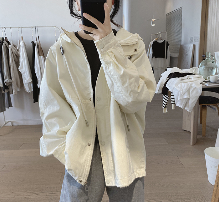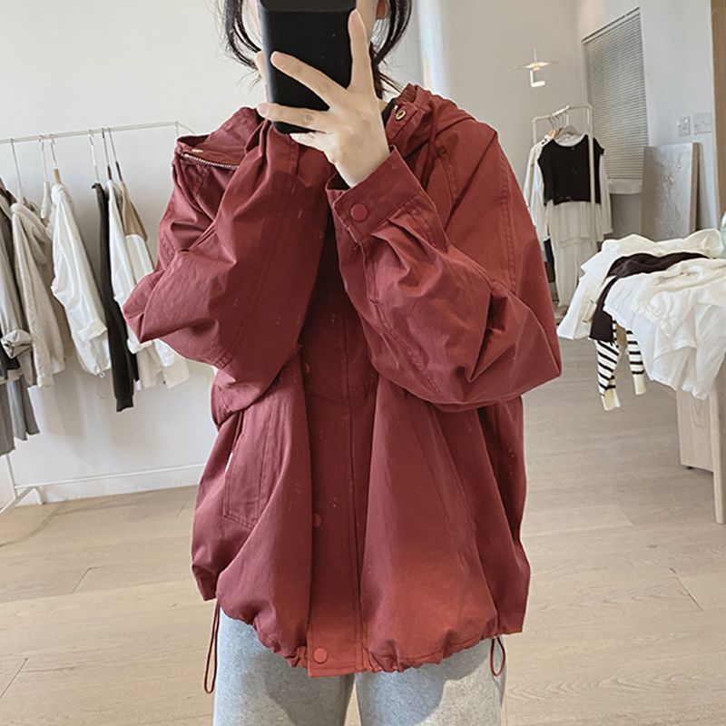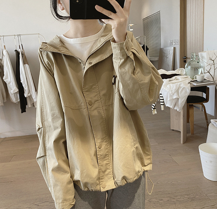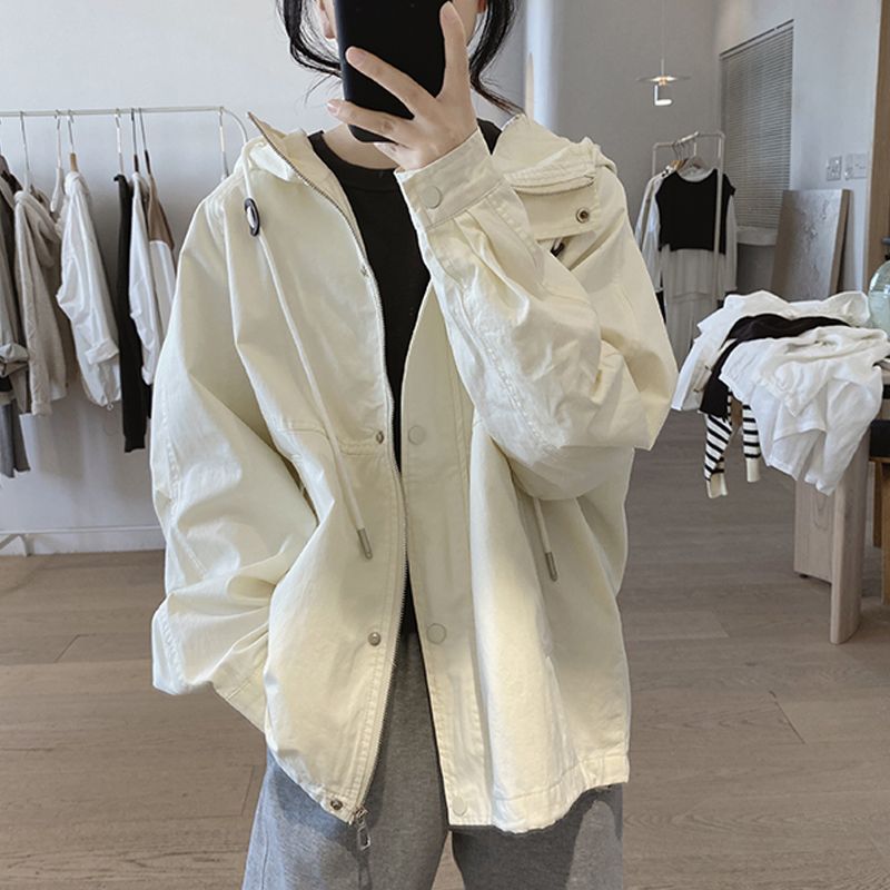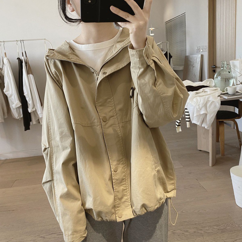더블 레이어 라미네이트/후드 카고 재킷 여자의 봄 새로운 느슨한 심플 코튼 라글란 슬리브 재킷 탑스토어 가기