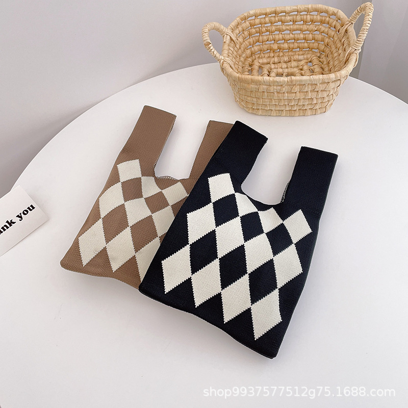 03 새 소녀의 2 색 줄무늬 니트 휴대용 어깨 가방 모든 경기 유행 휴식 패션 가방 크로스 바디 백스토어 가기