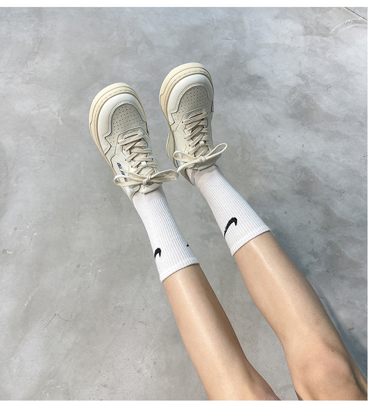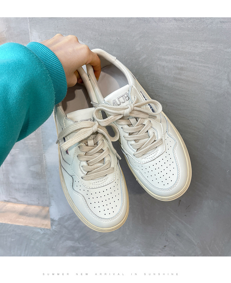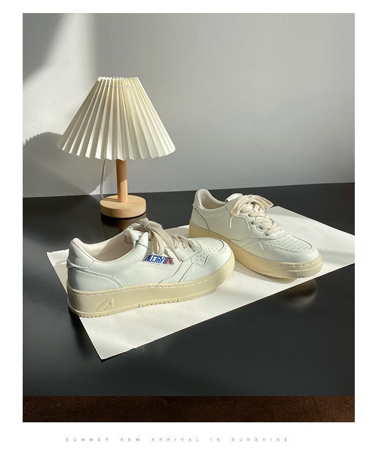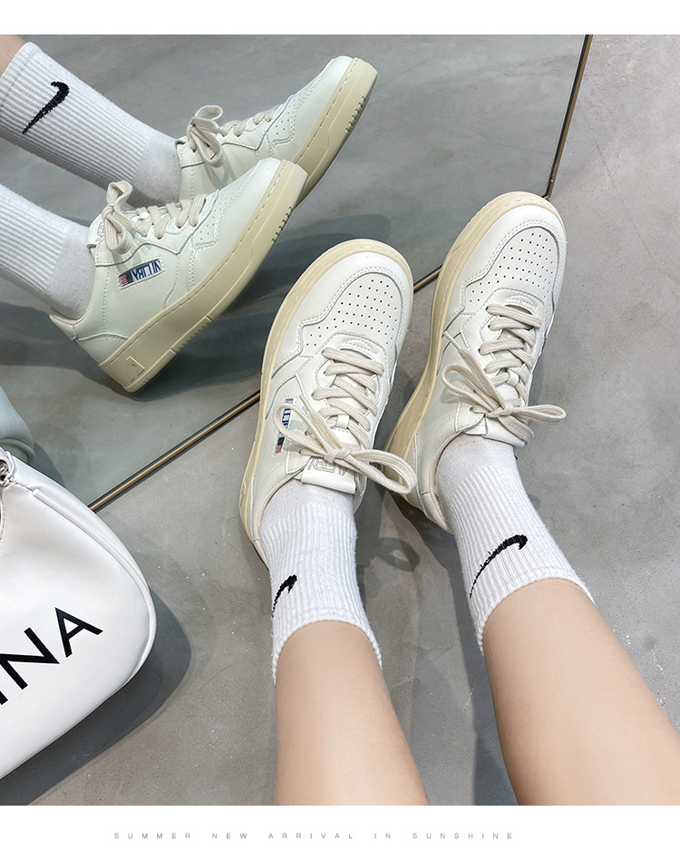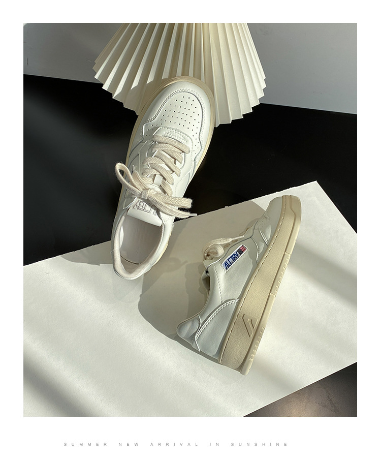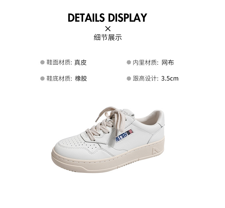 여성을위한 정품 가죽 두꺼운 밑창 흰색 신발 2025 새로운 한국 틈새 다목적 레이스 업 도덕적 훈련 신발 캐주얼 스포츠 스니커즈 트렌드스토어 가기