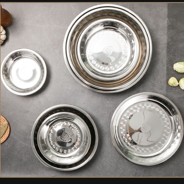 도매 두꺼운 304 스테인레스 스틸 디스크 비 자석 다용도 바베큐 디너 플레이트 깊은 플랫 접시 식품 트레이