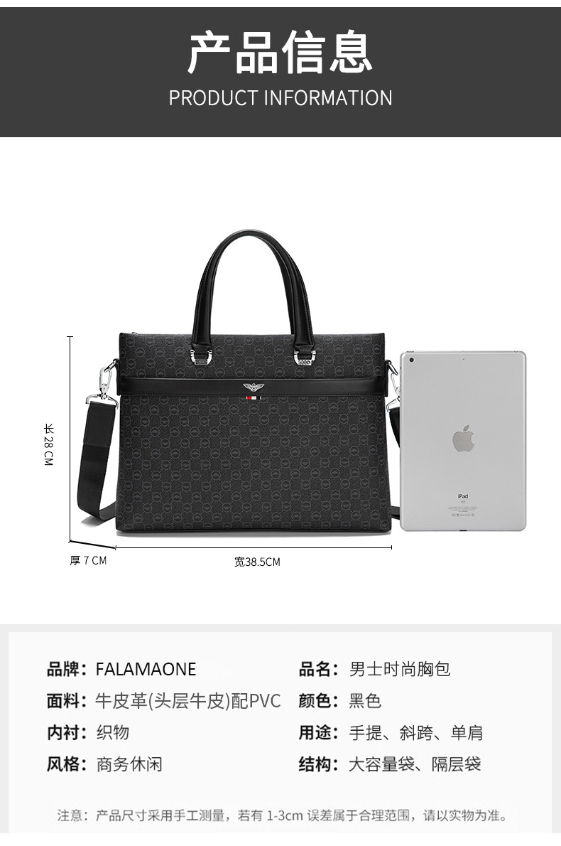 팔라이 아르마니 남성용 비즈니스 핸드백 크로스바디 포인트 컴퓨터 가방 라이트 럭셔리 패션 서류 가방