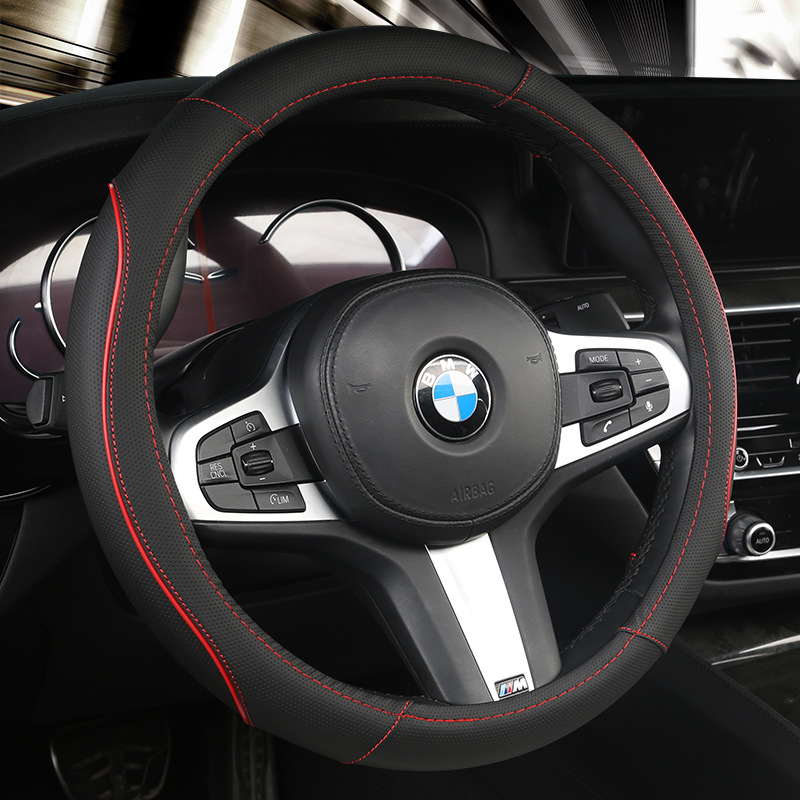 미끄럼 방지 자동차 핸들 커버 가죽 여름 사계절 통풍 범용 핸들 커버 비즈니스 스타일