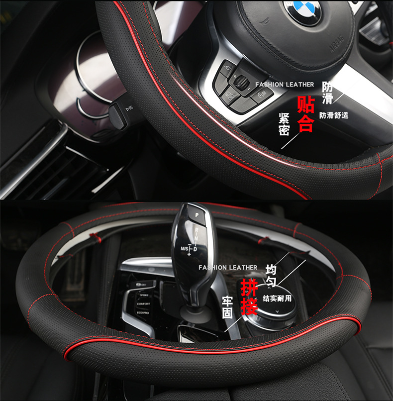 미끄럼 방지 자동차 핸들 커버 가죽 여름 사계절 통풍 범용 핸들 커버 비즈니스 스타일스토어 가기