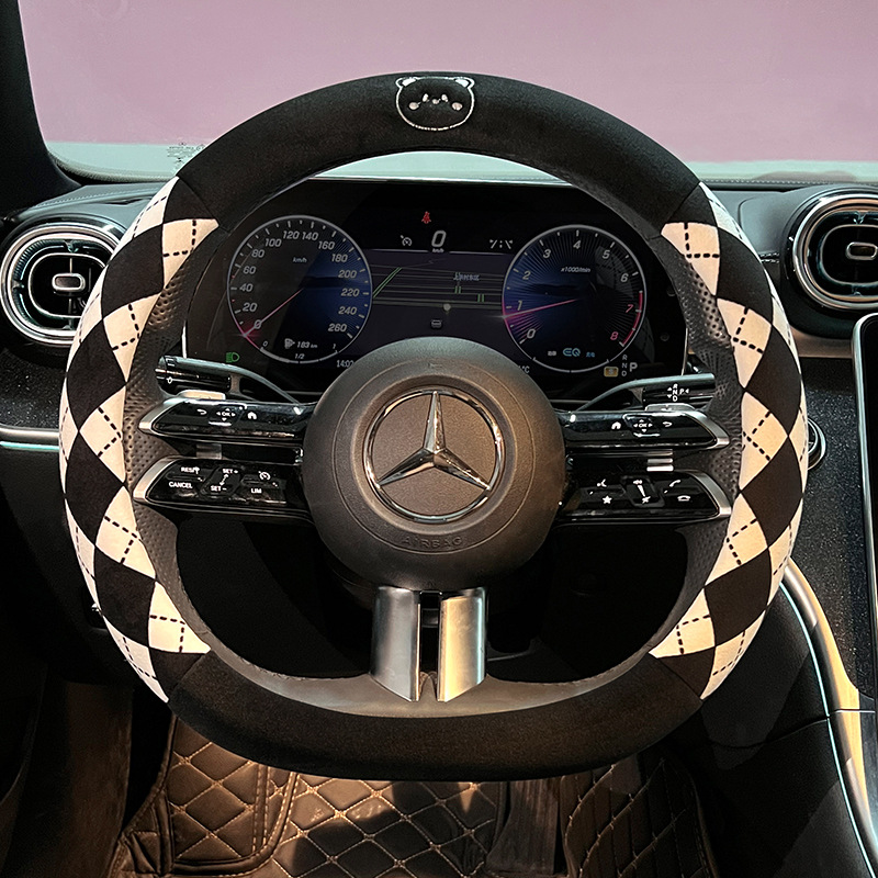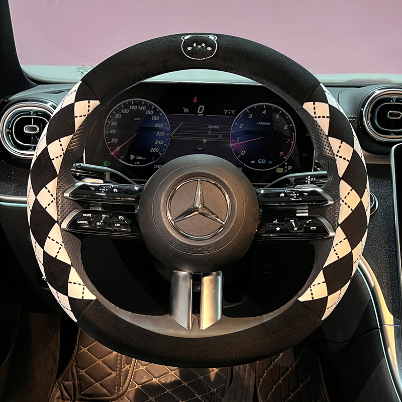 클래식 다이아몬드 겨울용 짧은 털 자동차 핸들 커버, 인기 판매 귀여운 핸들 커버, 공장 직판, 도매 가능스토어 가기