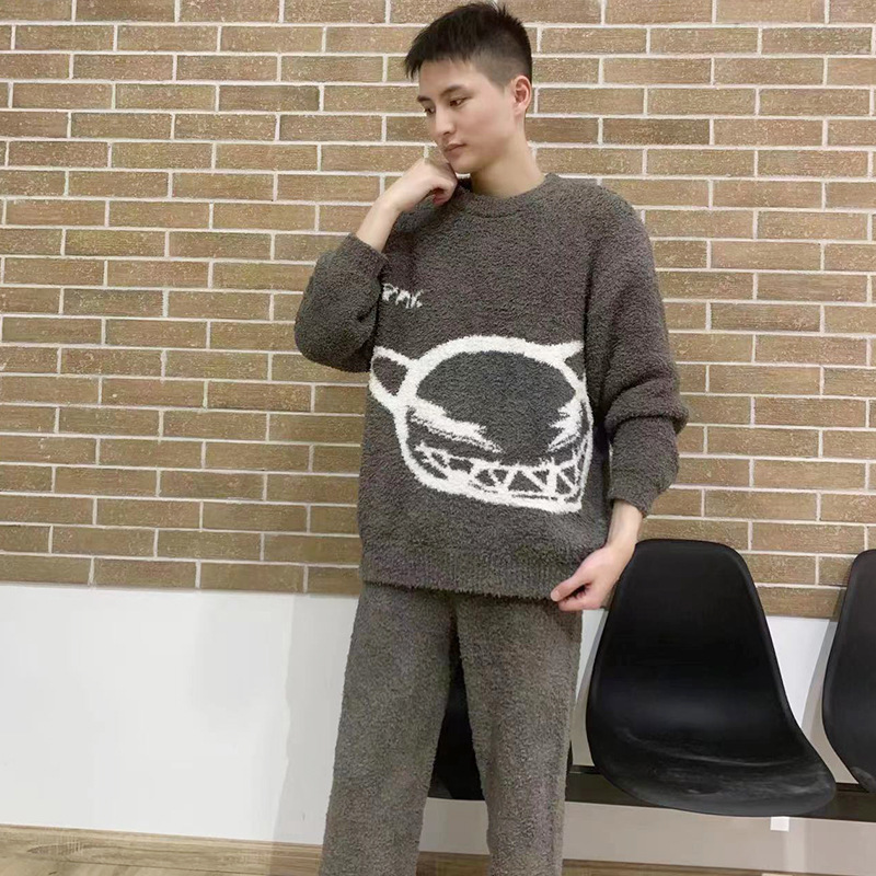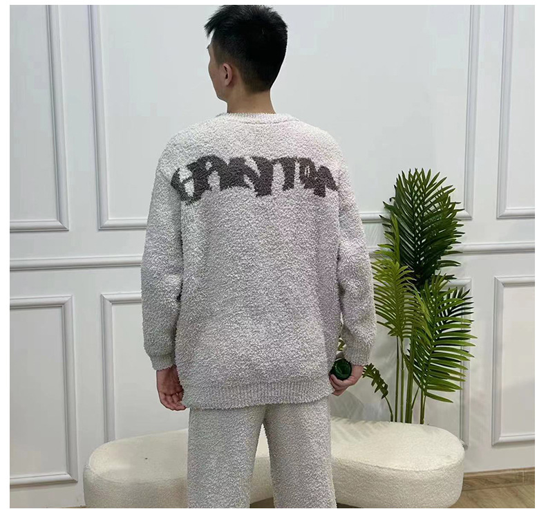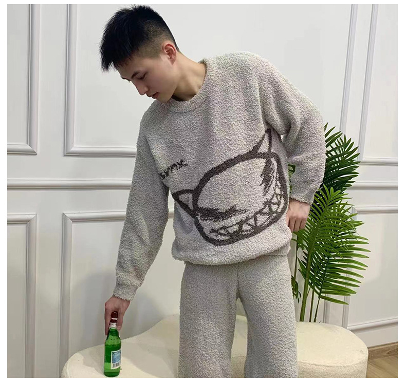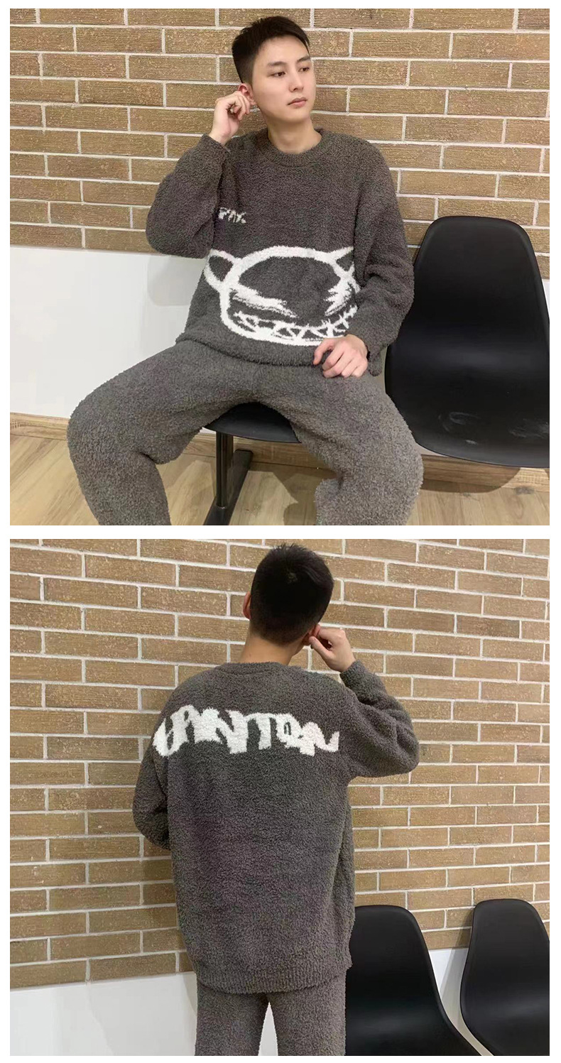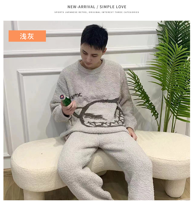 부드러운 겨울 잠옷 여성 도매 하프 벨벳 잠옷 남성용 두꺼운 따뜻한 가정 옷 여성 정장은 외부에서 착용 할 수 있습니다스토어 가기