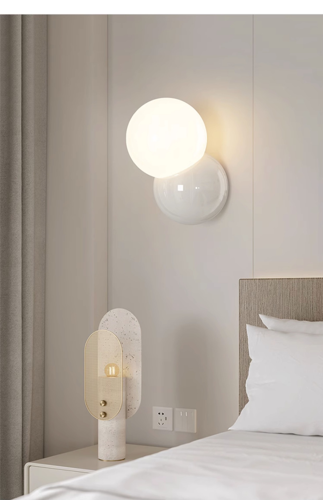 크림 바람 설탕 콩 침대 옆 벽 램프 2025 새로운 거실 배경 벽 장식 램프 창조적 인 분위기 침실 교수형 램프스토어 가기