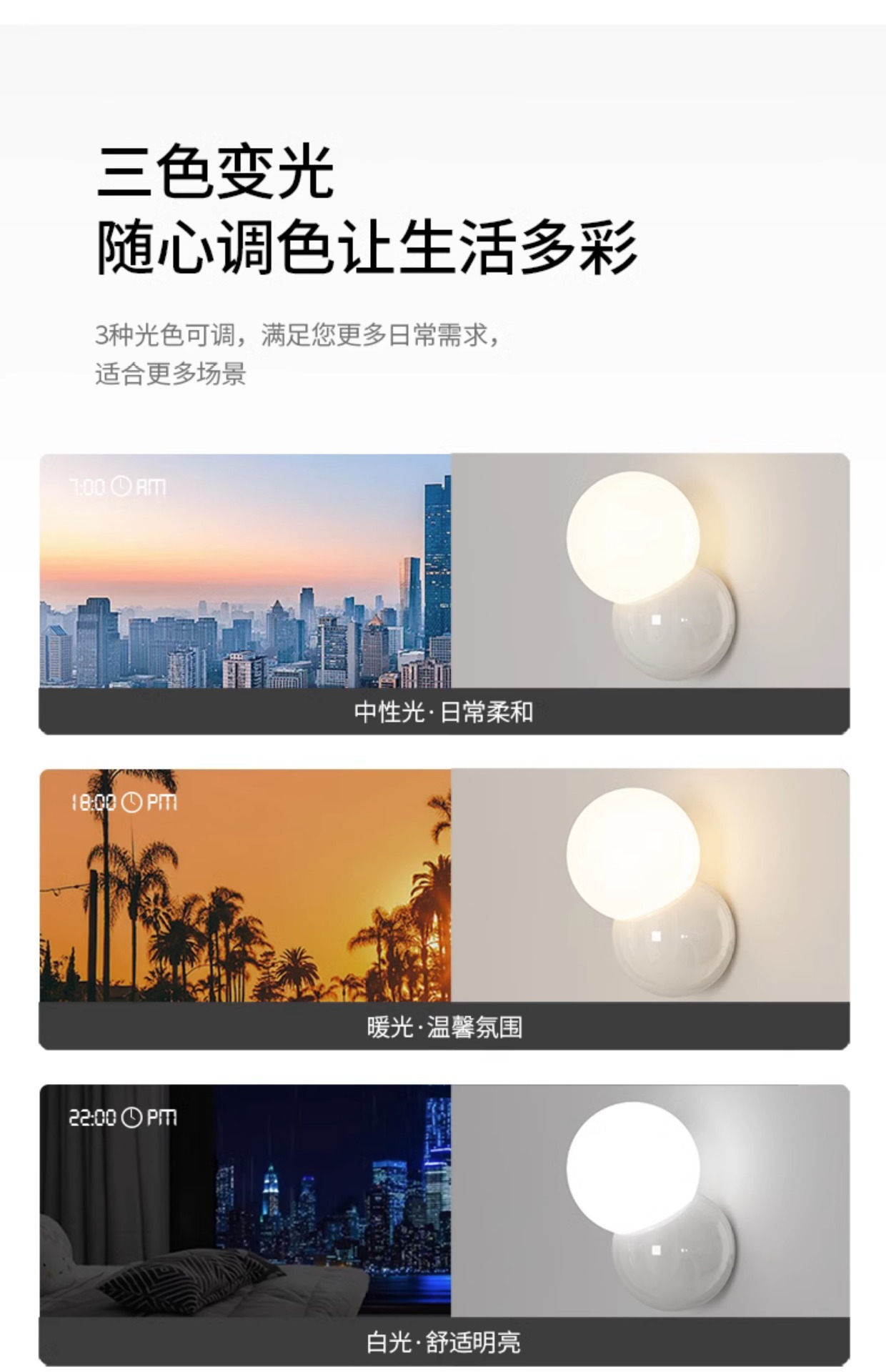 • 세 가지 색상으로 변하는 조명