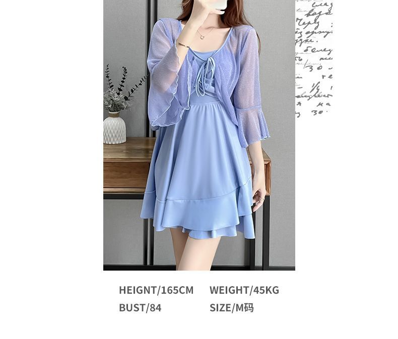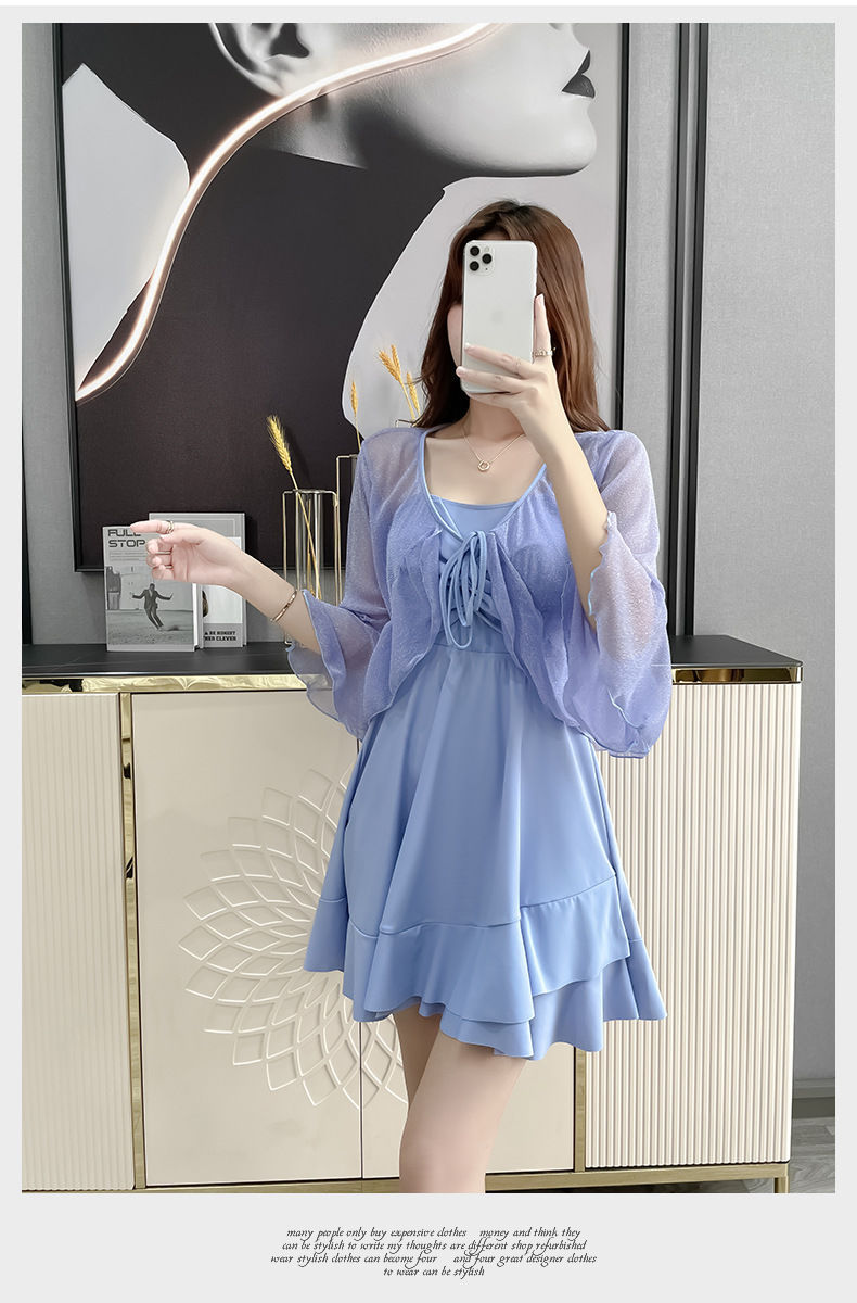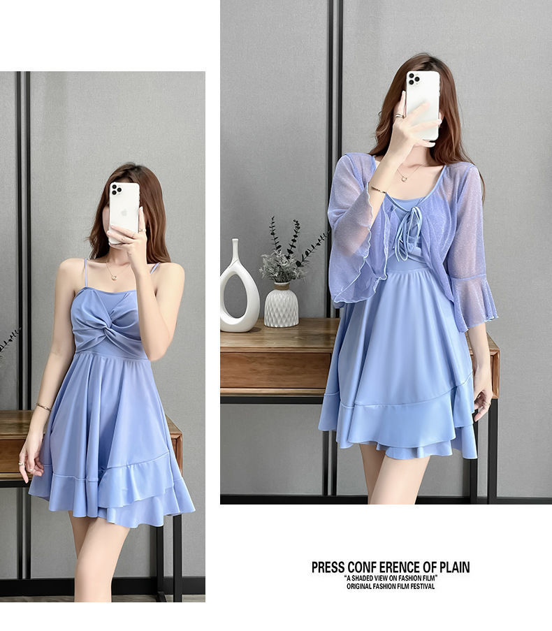 2023 새로운 원피스 스커트 스타일의 온천 입욕 세트 여성의 폭발적인 블라우스 순수한 욕망 바람 보수적 인 살 덮인 슬리밍 수영복스토어 가기