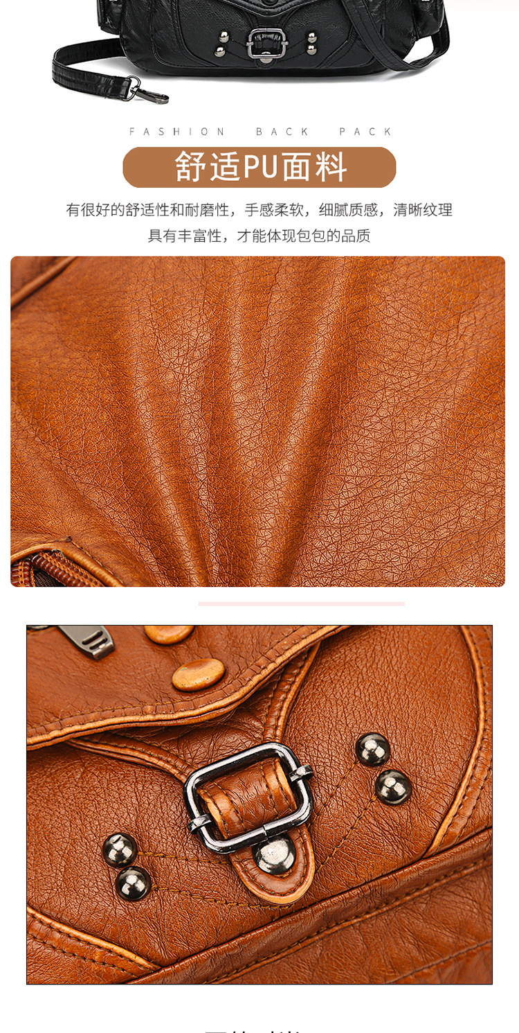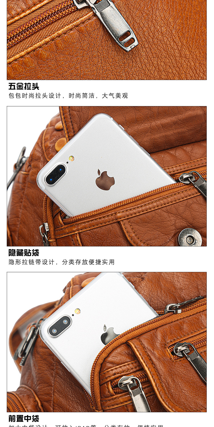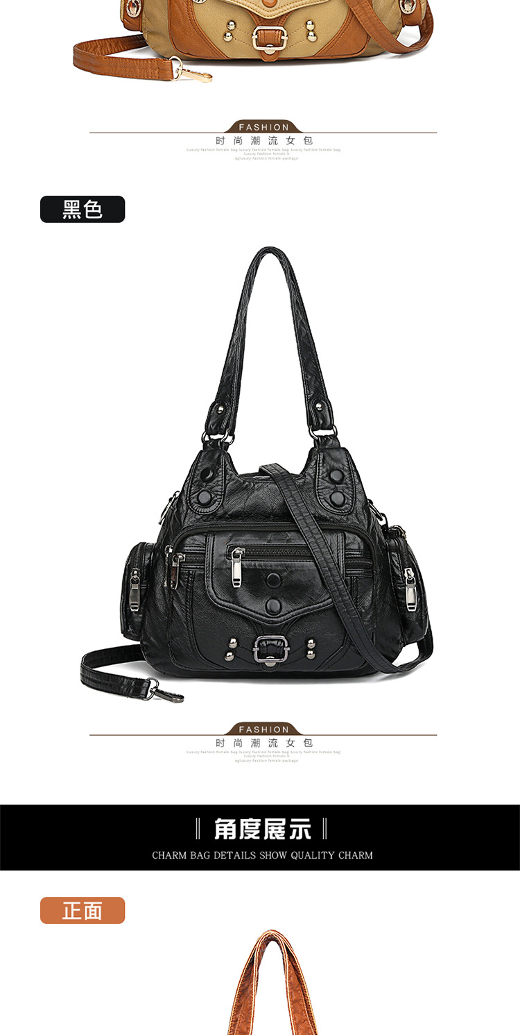 숄더백 겸용 핸드백, 부드러운 가죽, 대용량, 다층, 크로스보더 트렌디, 워싱 가죽 여성 가방, 아마존 인기 상품, 배색 가방