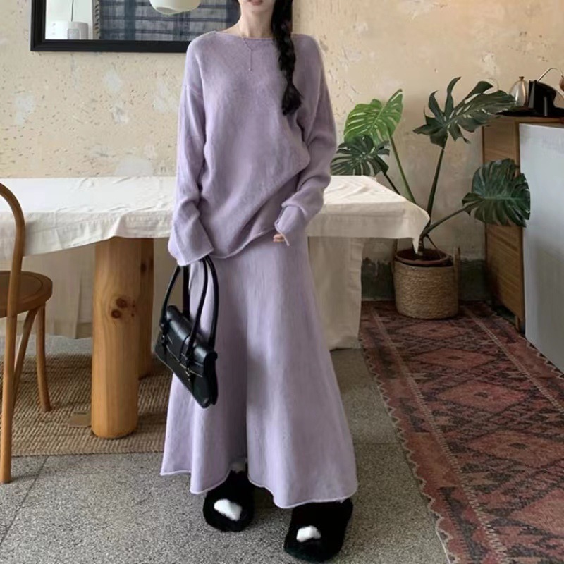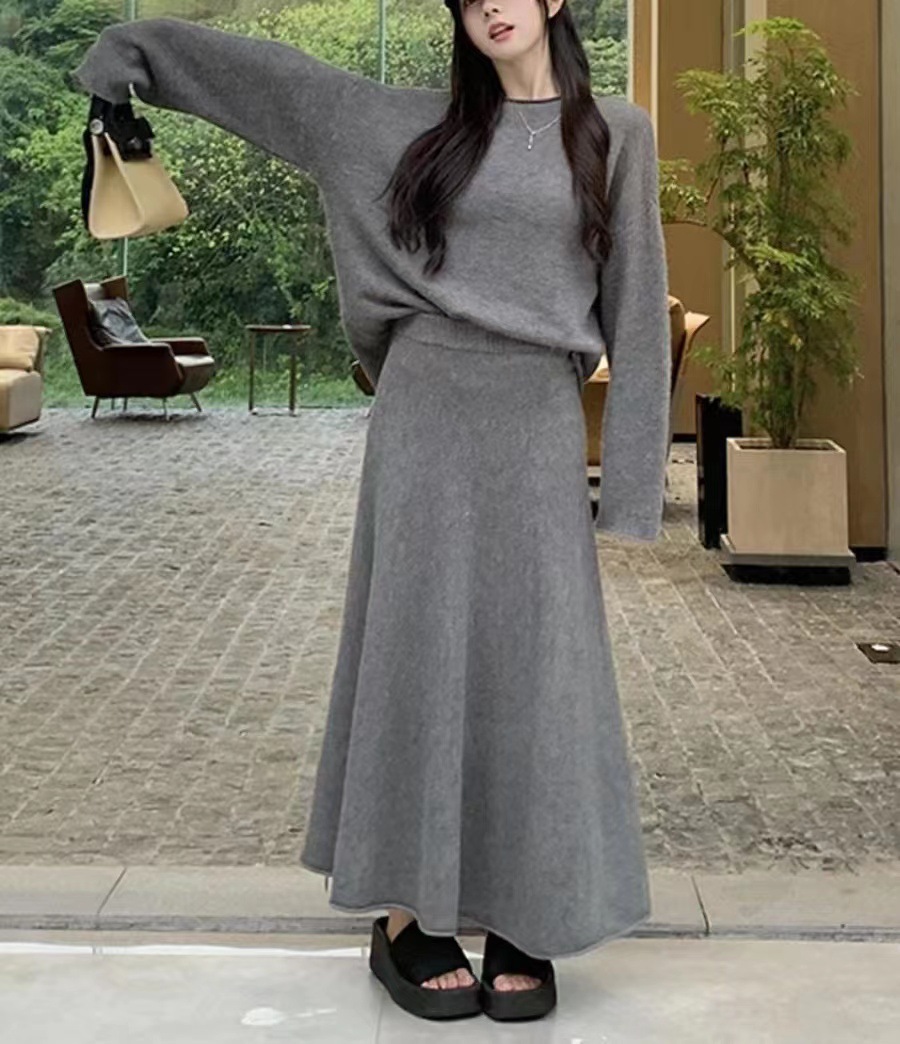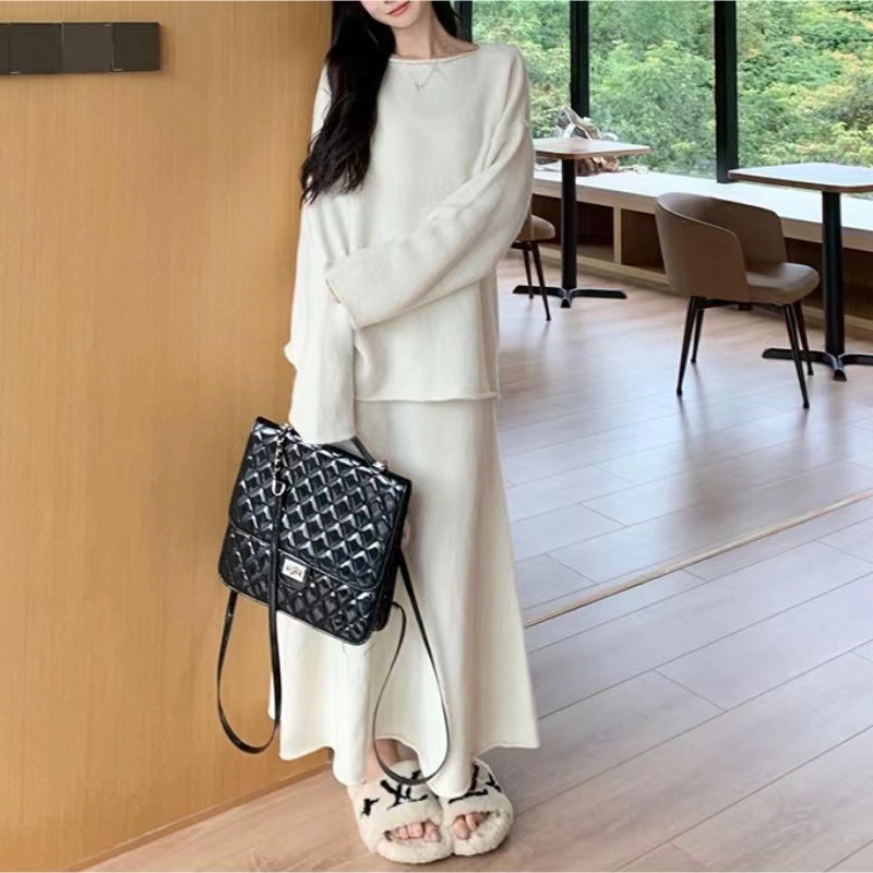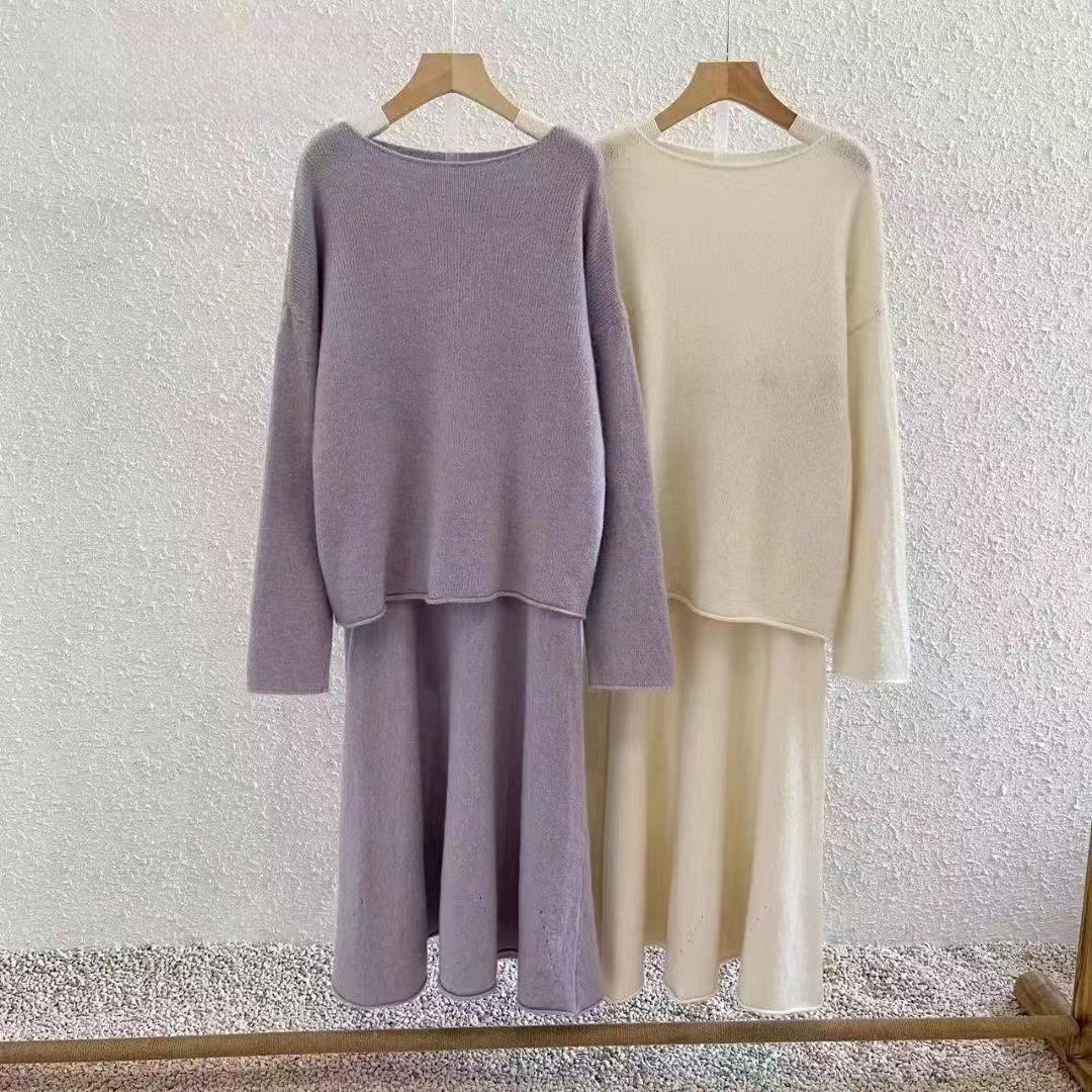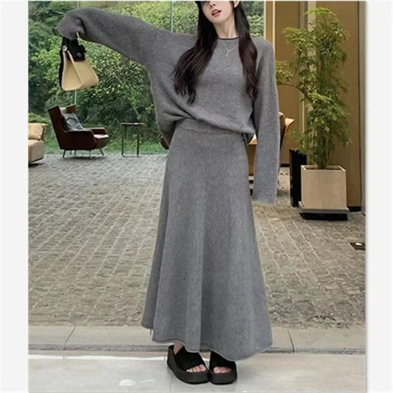 고급 우아한 니트 스웨터 세트 여성의 이른 봄과 가을 새로운 느슨한 크루넥 스웨터 슬림핏 스커트 투피스 세트스토어 가기