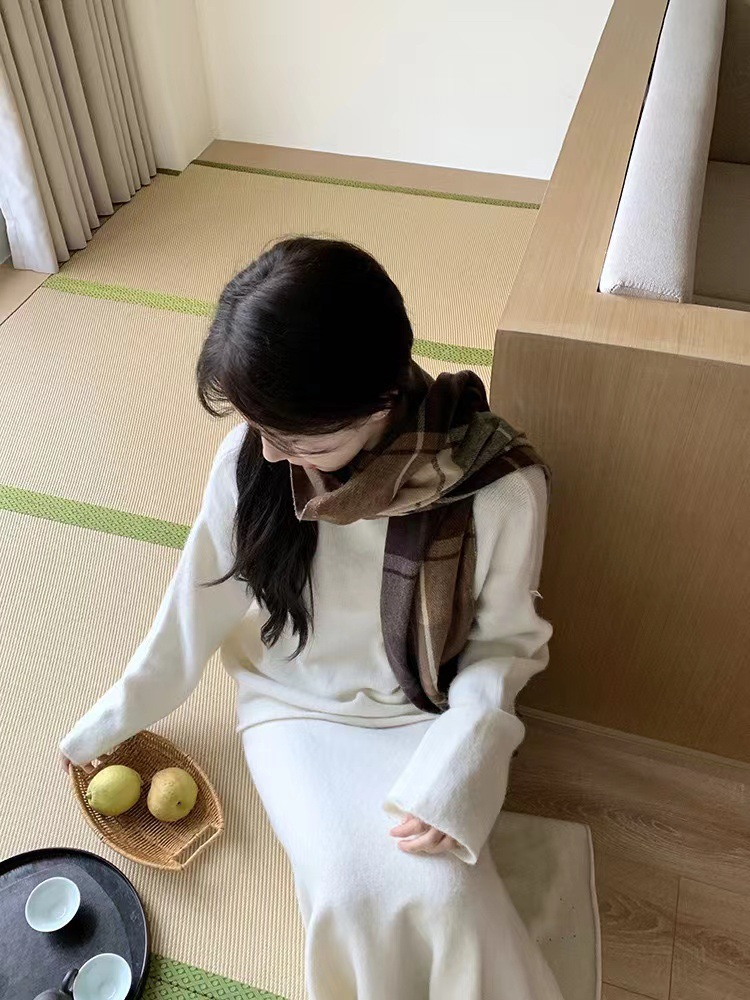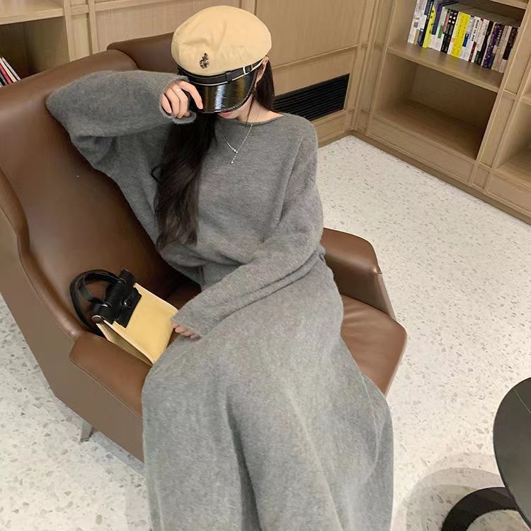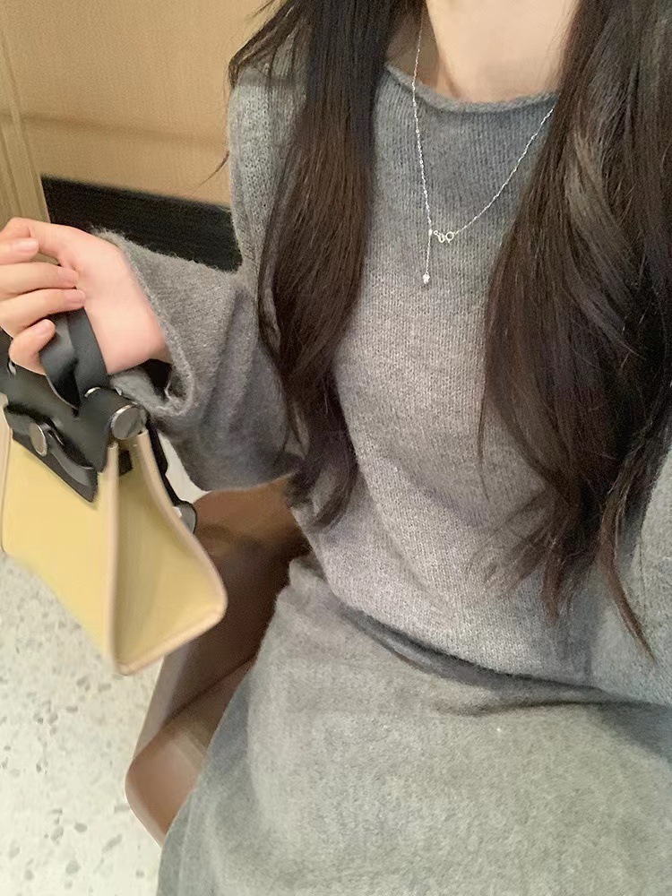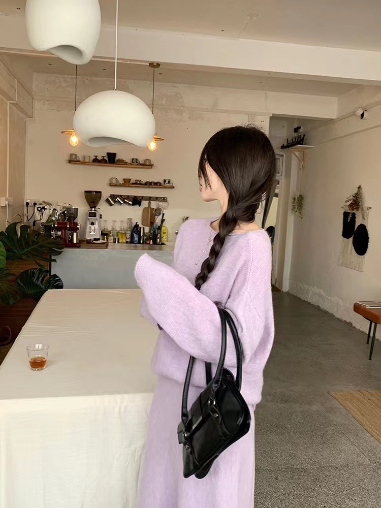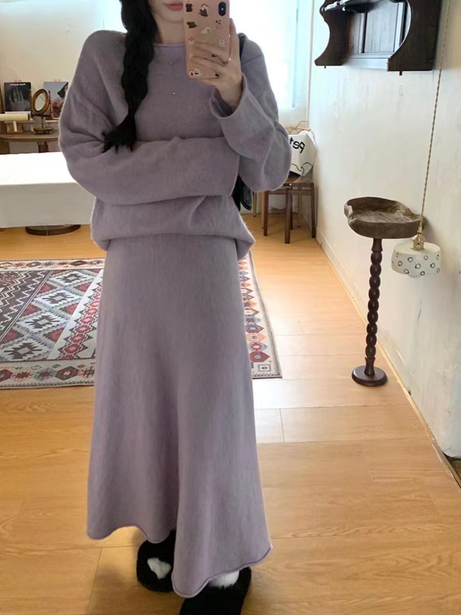 고급 우아한 니트 스웨터 세트 여성의 이른 봄과 가을 새로운 느슨한 크루넥 스웨터 슬림핏 스커트 투피스 세트스토어 가기