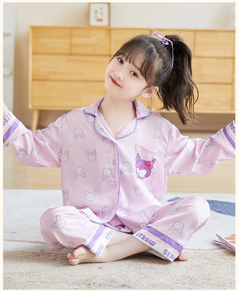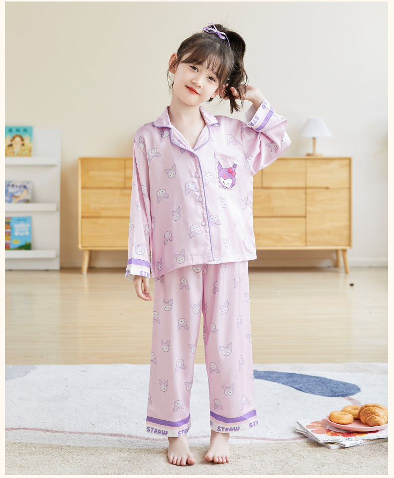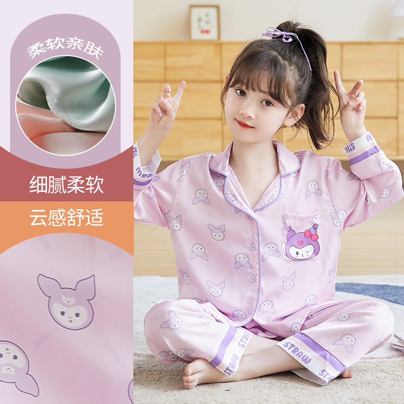 어린이 잠옷 가을 2025 신상 여아 긴팔 중소형 아동용 가디건 면 실크 홈웨어 세트 도매스토어 가기