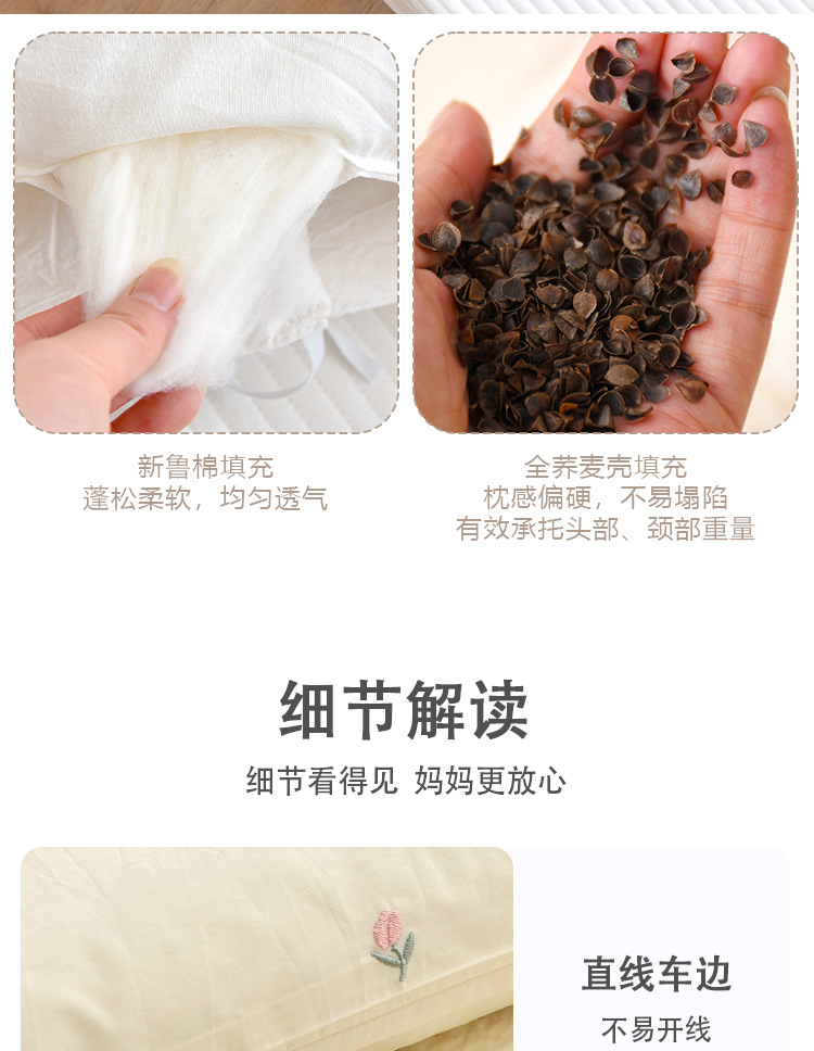 枕芯分为两款荞麦、棉花