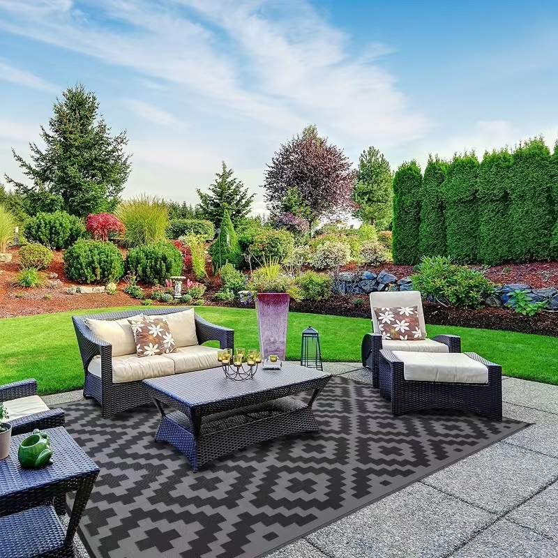 PP 짠 휴대용 플라스틱 야외 바닥 매트 카펫 캠핑 매트 접이식 휴대용 자카드 비치 매트 비치 시트 방습