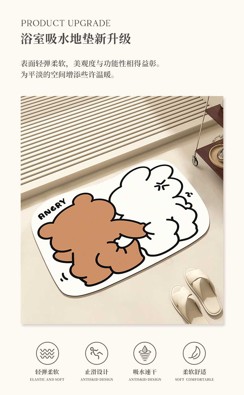 크리 에이 티브 만화 미끄럼 방지 바닥 매트 욕실 문 흡수성 빠른 건조 내구성 발 매트 가정용 취하기 쉬운 규조 진흙 바닥 매트