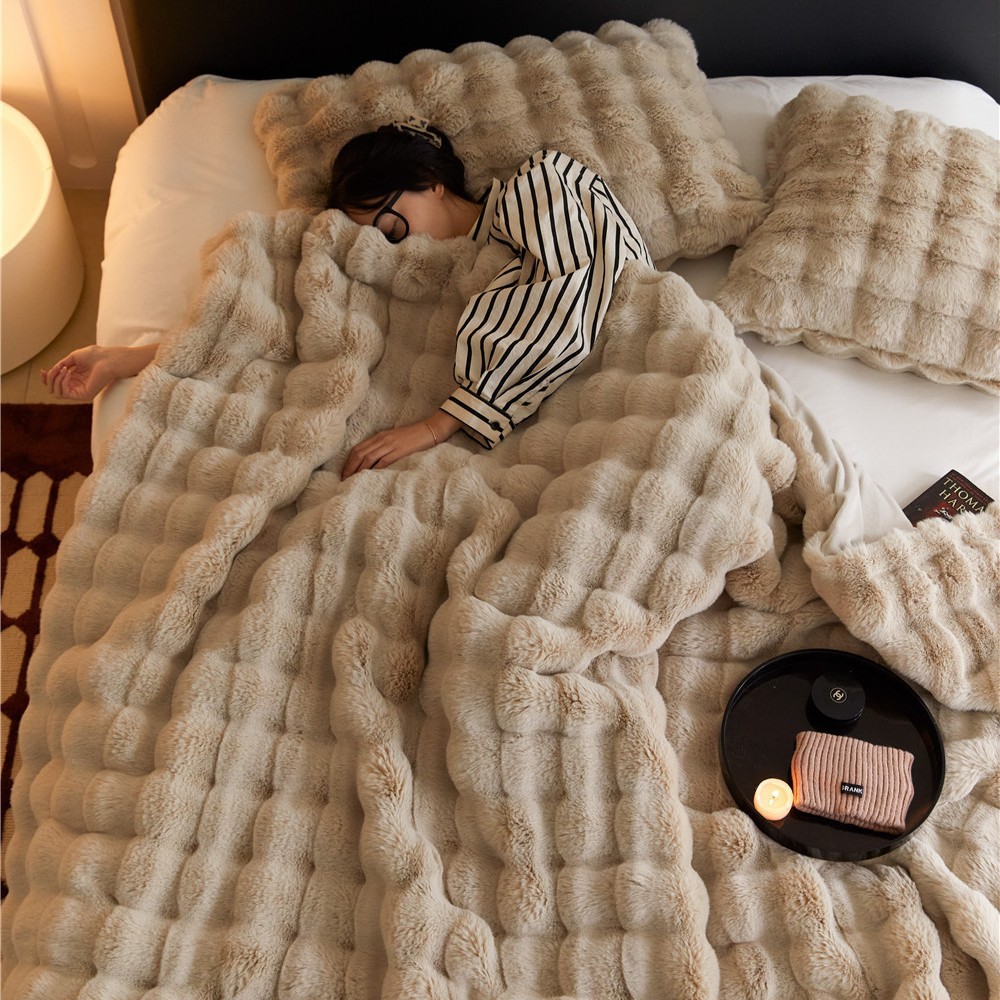 托斯卡纳仿兔毛绒毯双面AB面,仿皮草毛毯柔软不扎皮肤,不掉毛,裁剪轻微浮毛收到后抖抖即可,外贸跨境电商量大装箱可抽空包装。