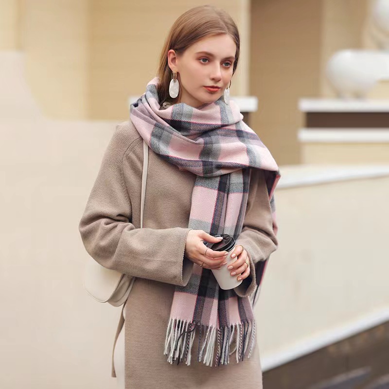 스카프 여성용 겨울 2023 새로운 캐시미어 스카프 대비 색상 격자 무늬 인쇄 숄 스카프 술 만능 스카프스토어 가기