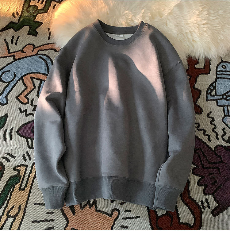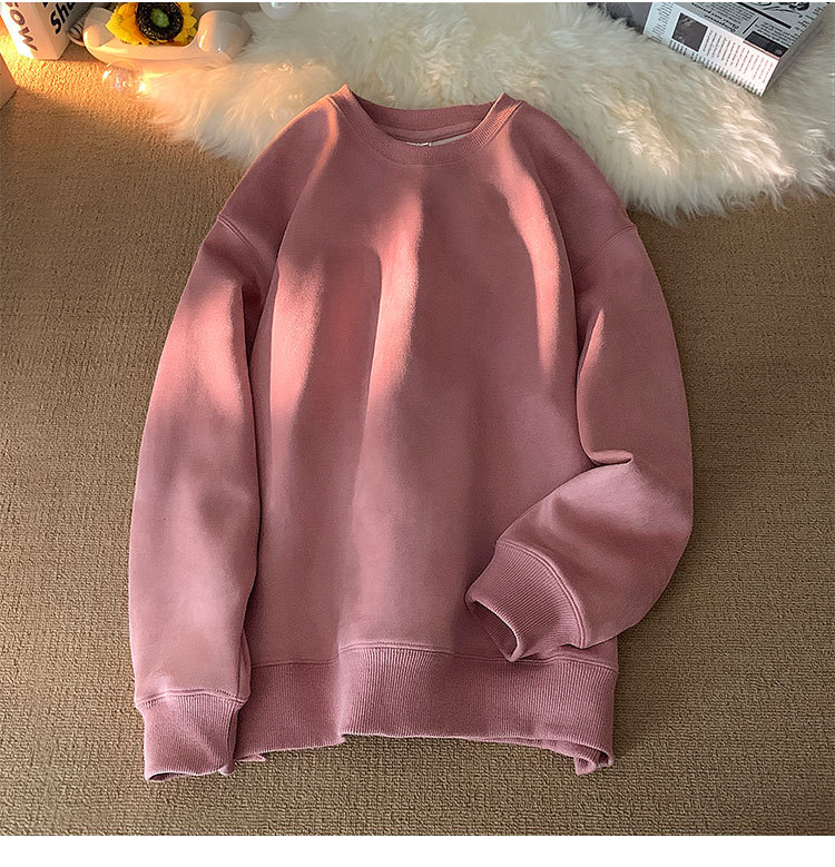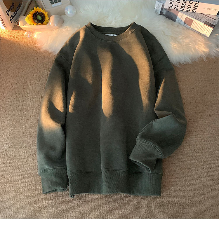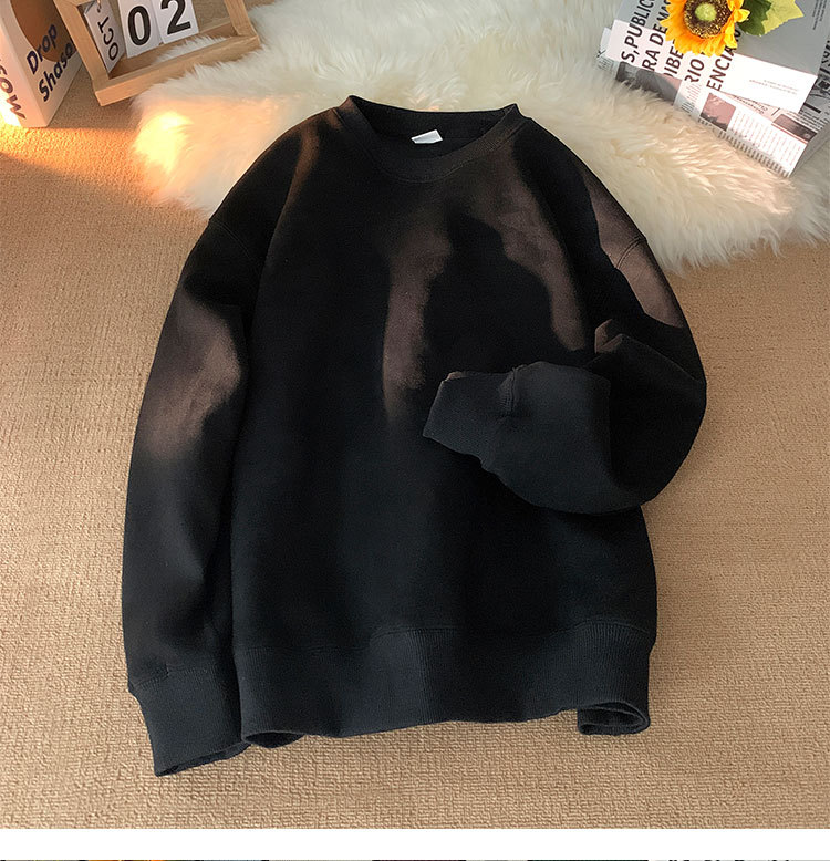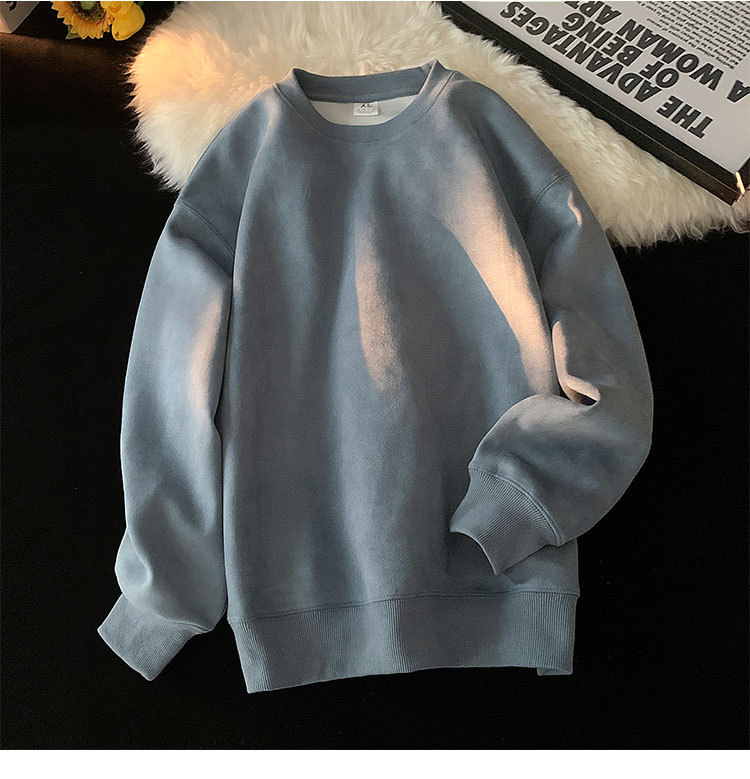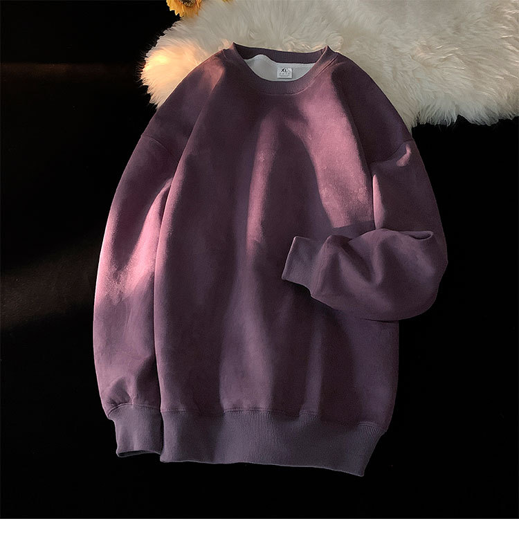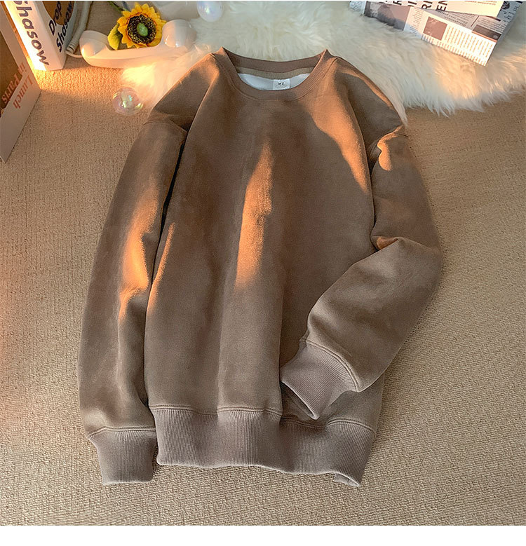 솔리드 컬러 스웨이드 라운드 넥 스웨터 2023 새로운 캐주얼 느슨한 긴 소매스토어 가기
