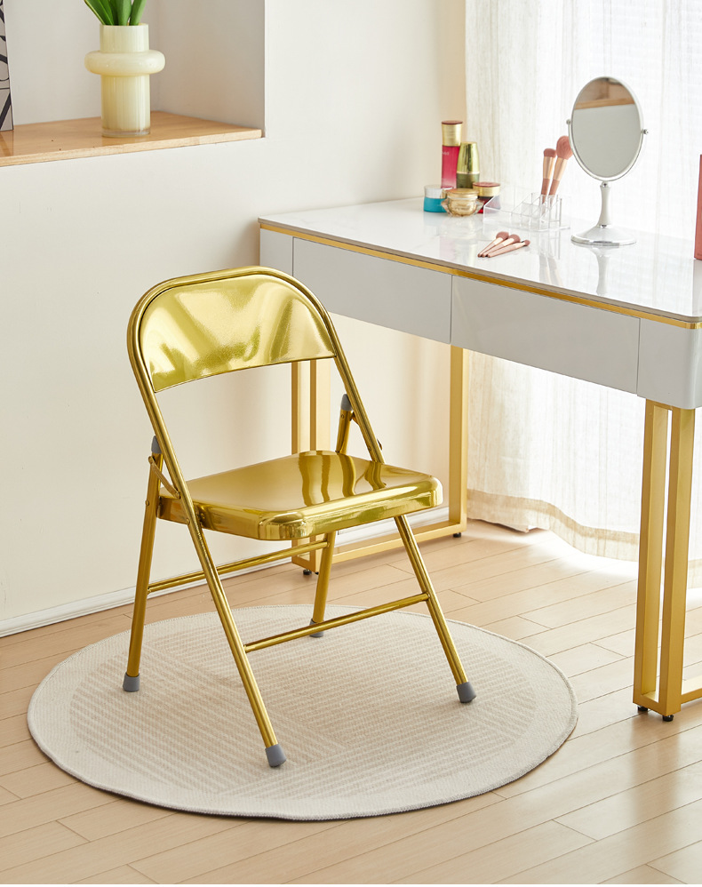 금속 스타일 스틸 아트 접이식 의자 등받이 간단한 의자 홈 기숙사 식당 의자 사무실 의자 Tuhao 골드 내구성 접는 의자