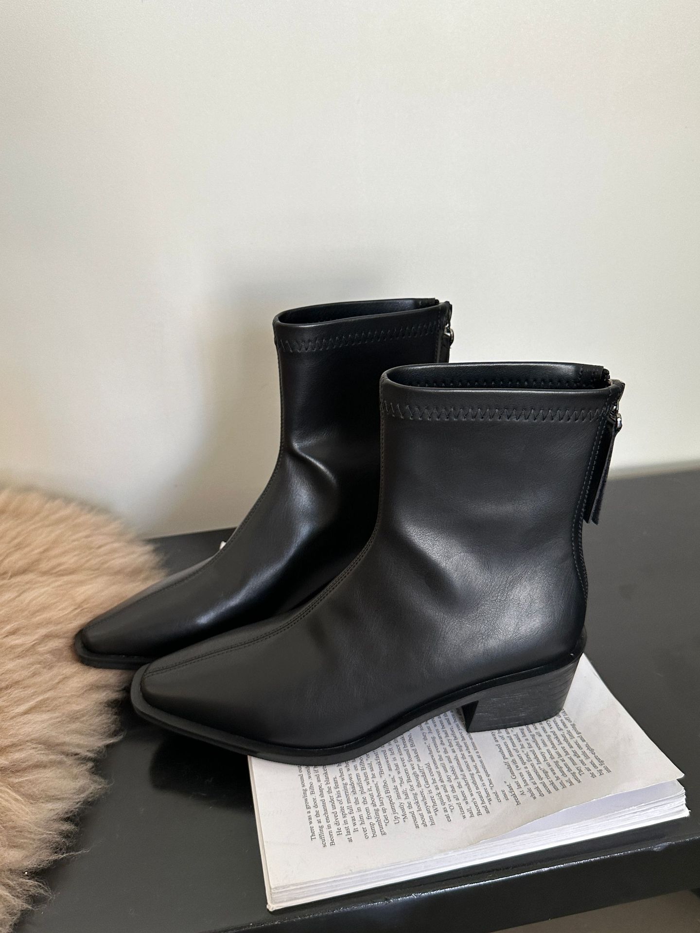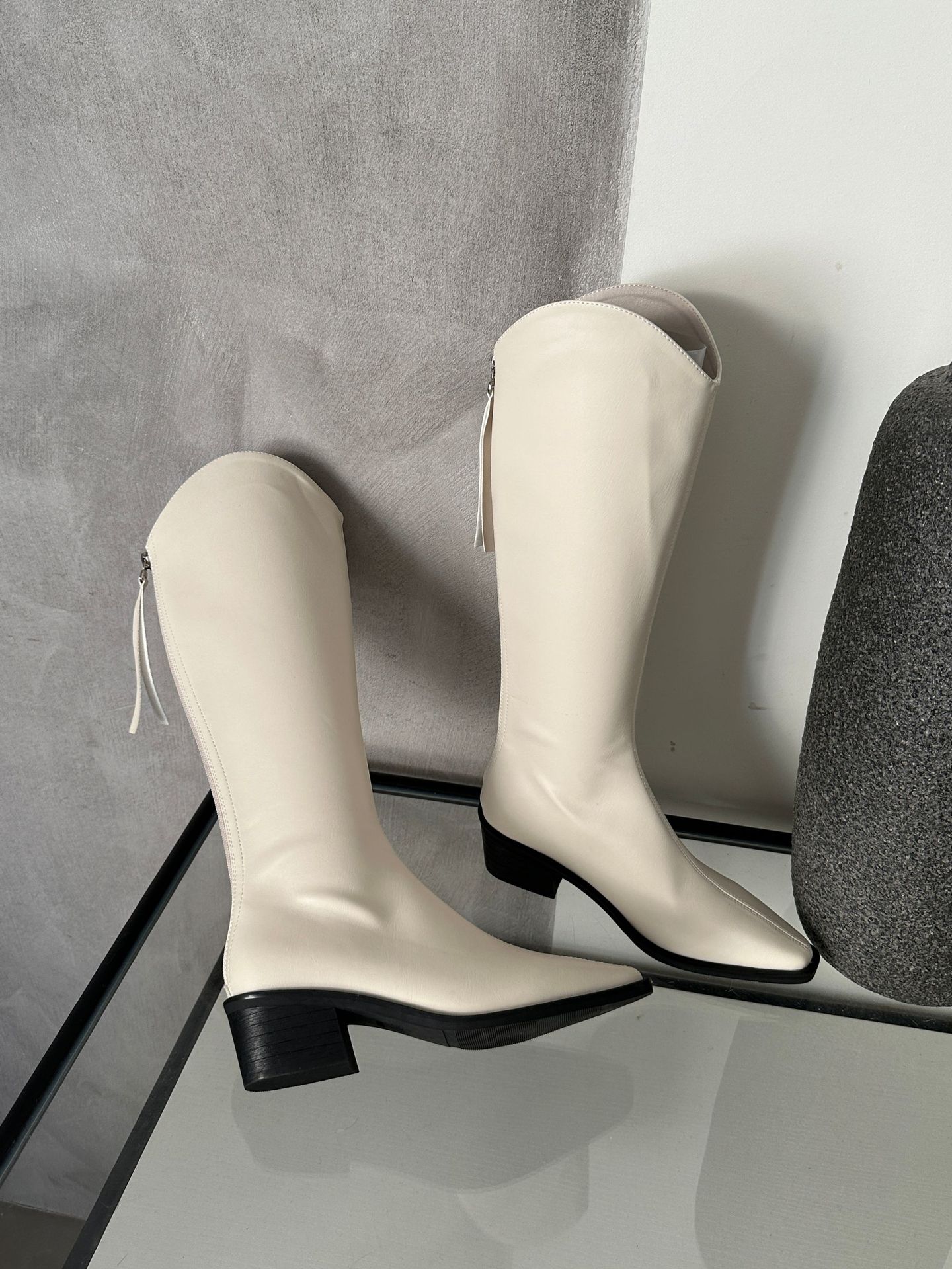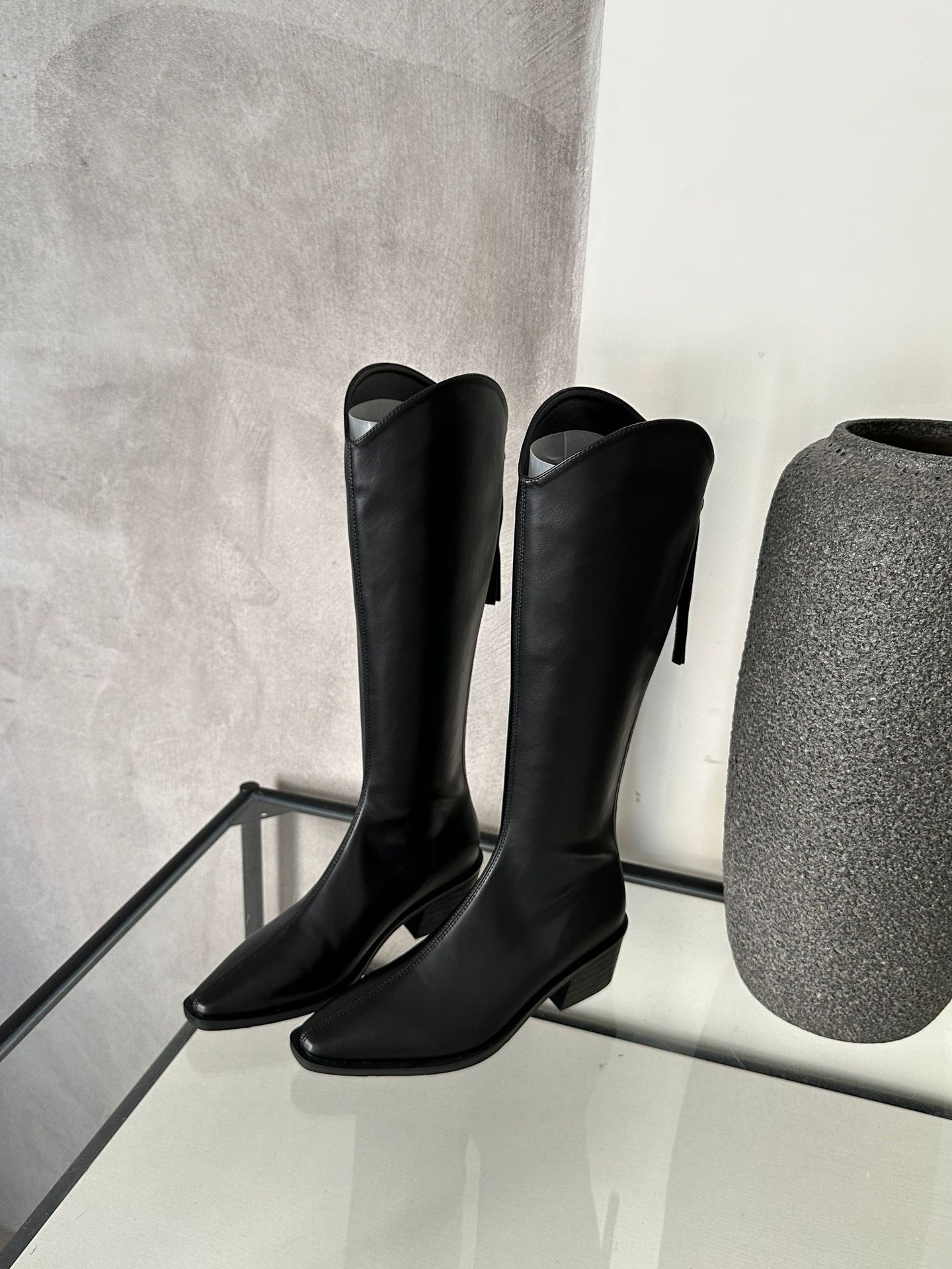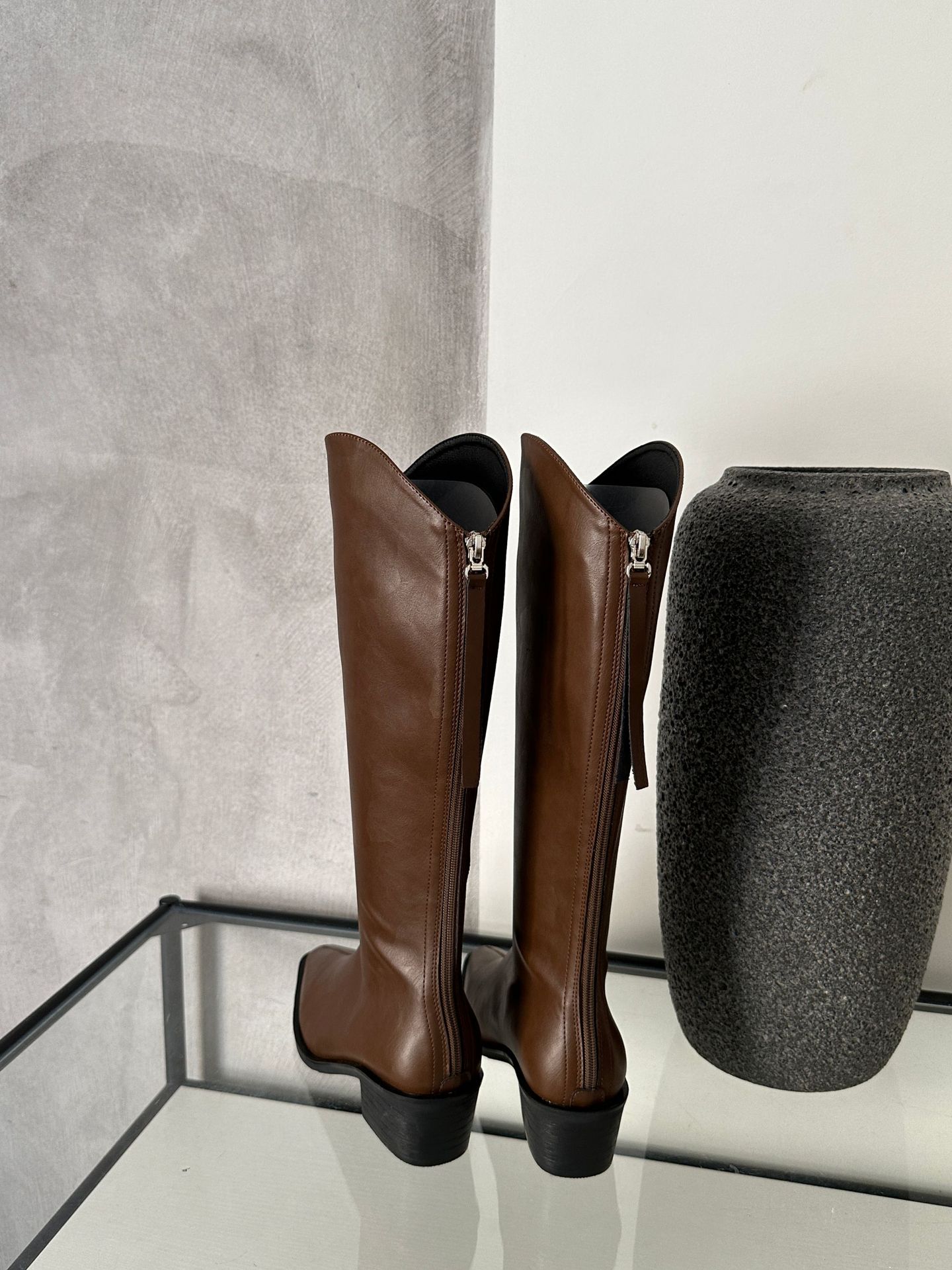 높은 굽 뾰족한 미국 스타일 레트로 롱 부츠 여성 신발 2023 새로운 가을과 겨울 다크 브라운 데님 긴 기사 부츠