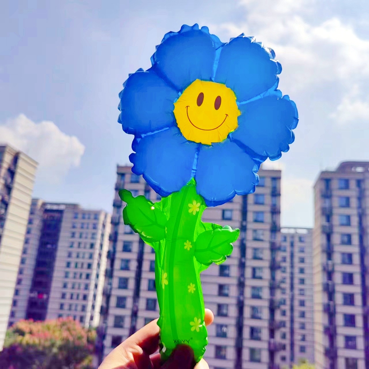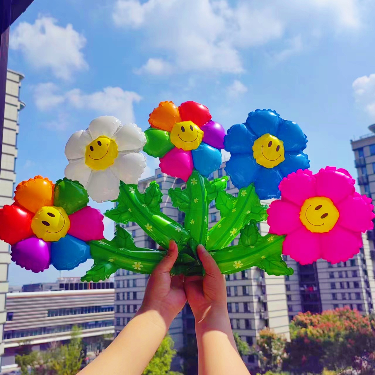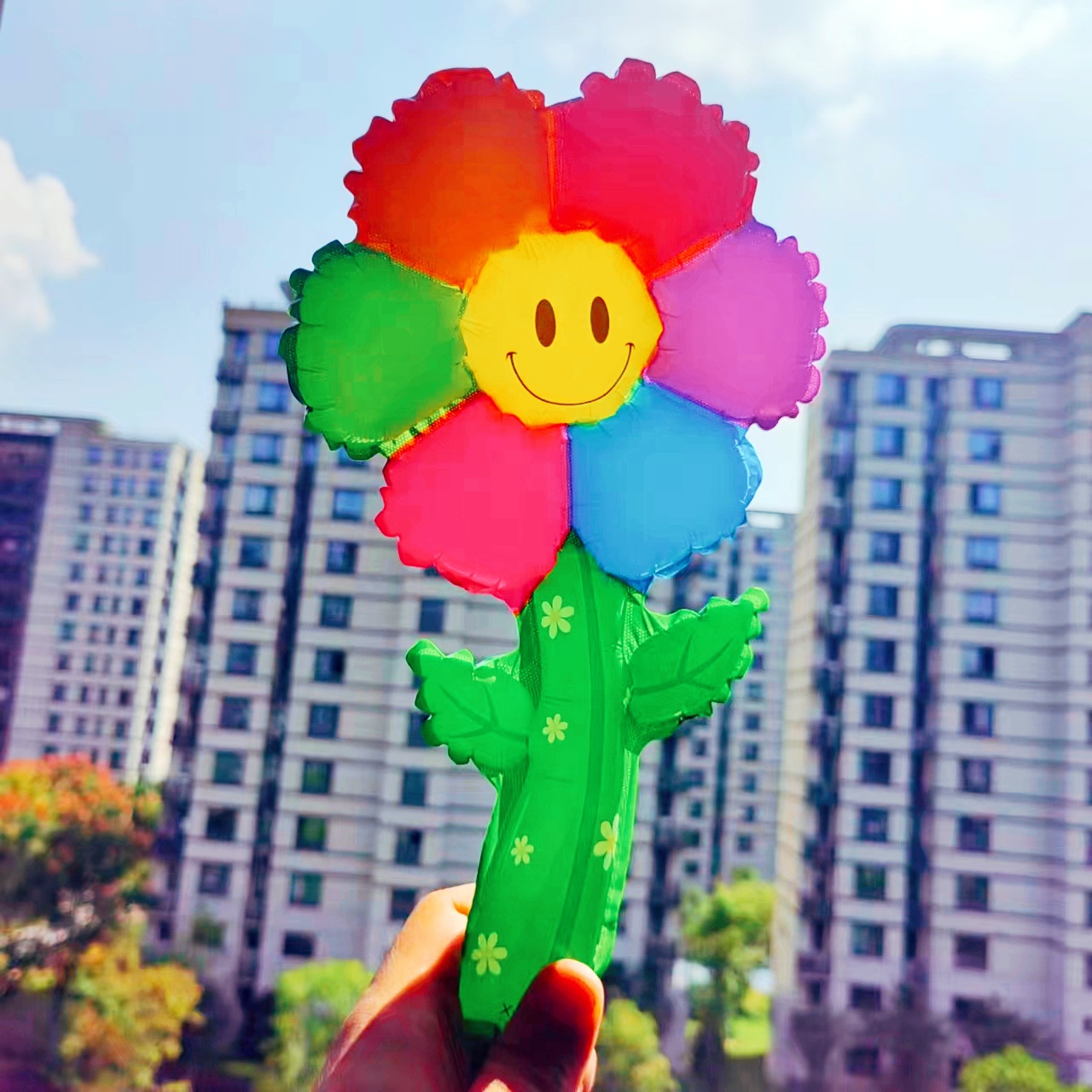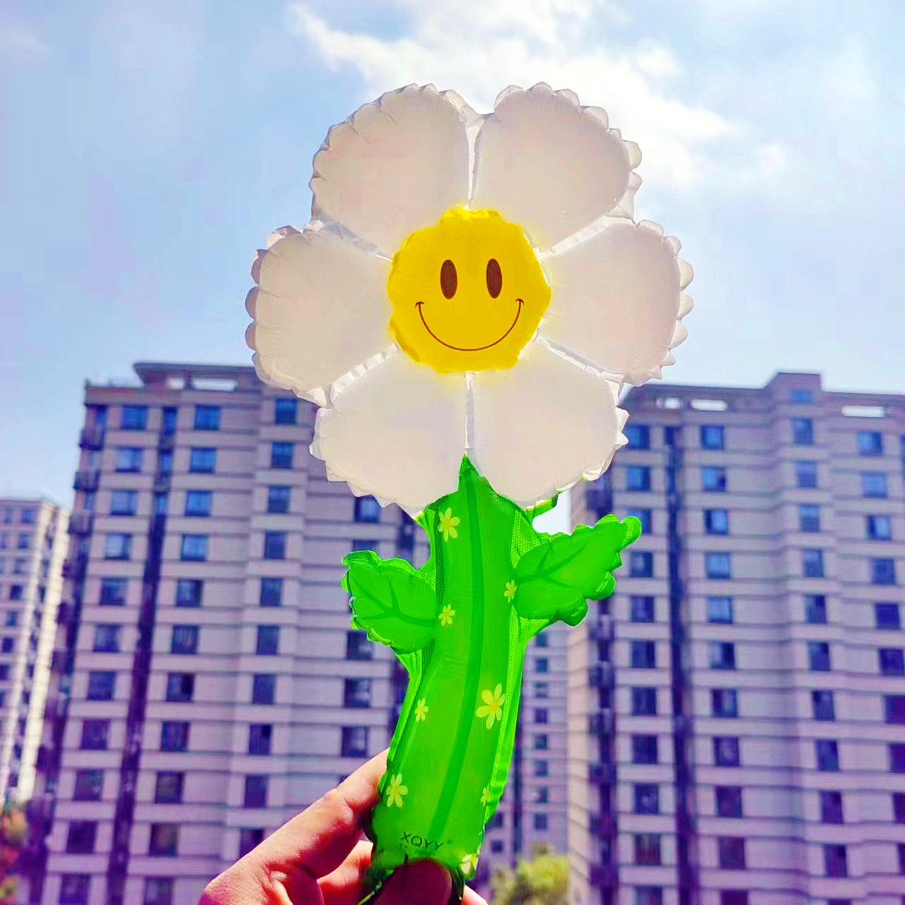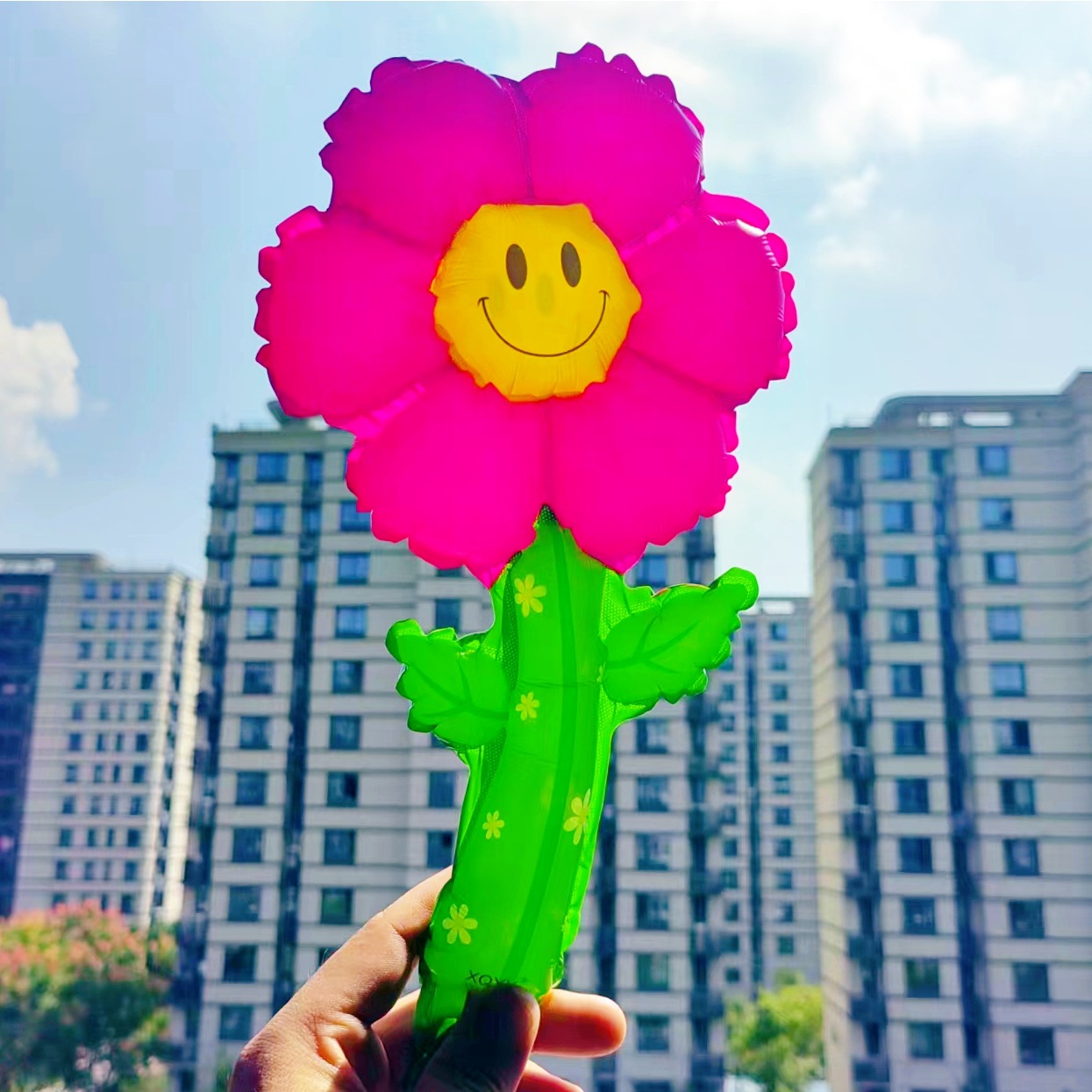 웃는 작은 데이지 해바라기 휴대용 스틱 꽃 풍선 어린이 생일 장식 유치원 보상 푸시 선물스토어 가기
