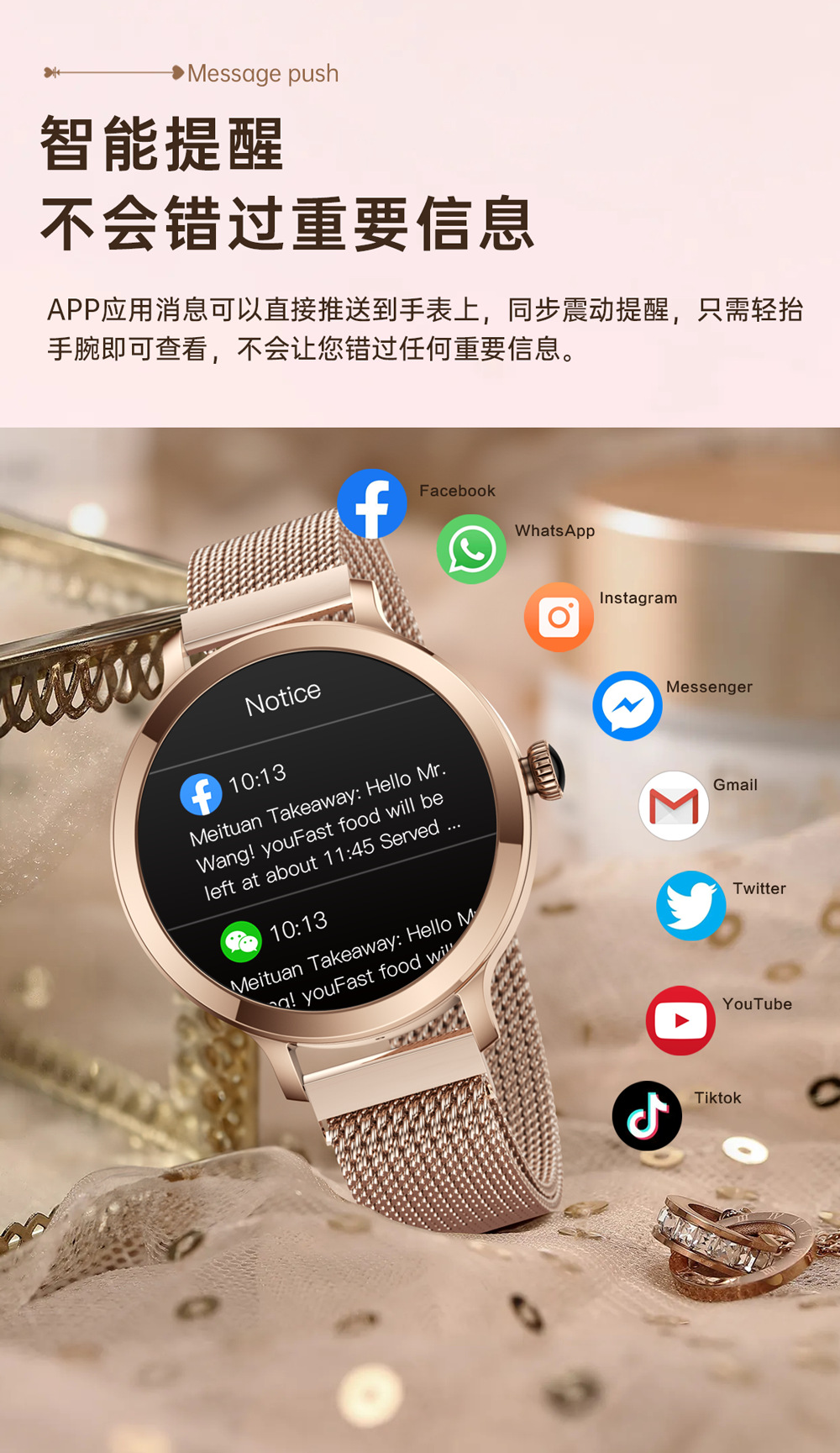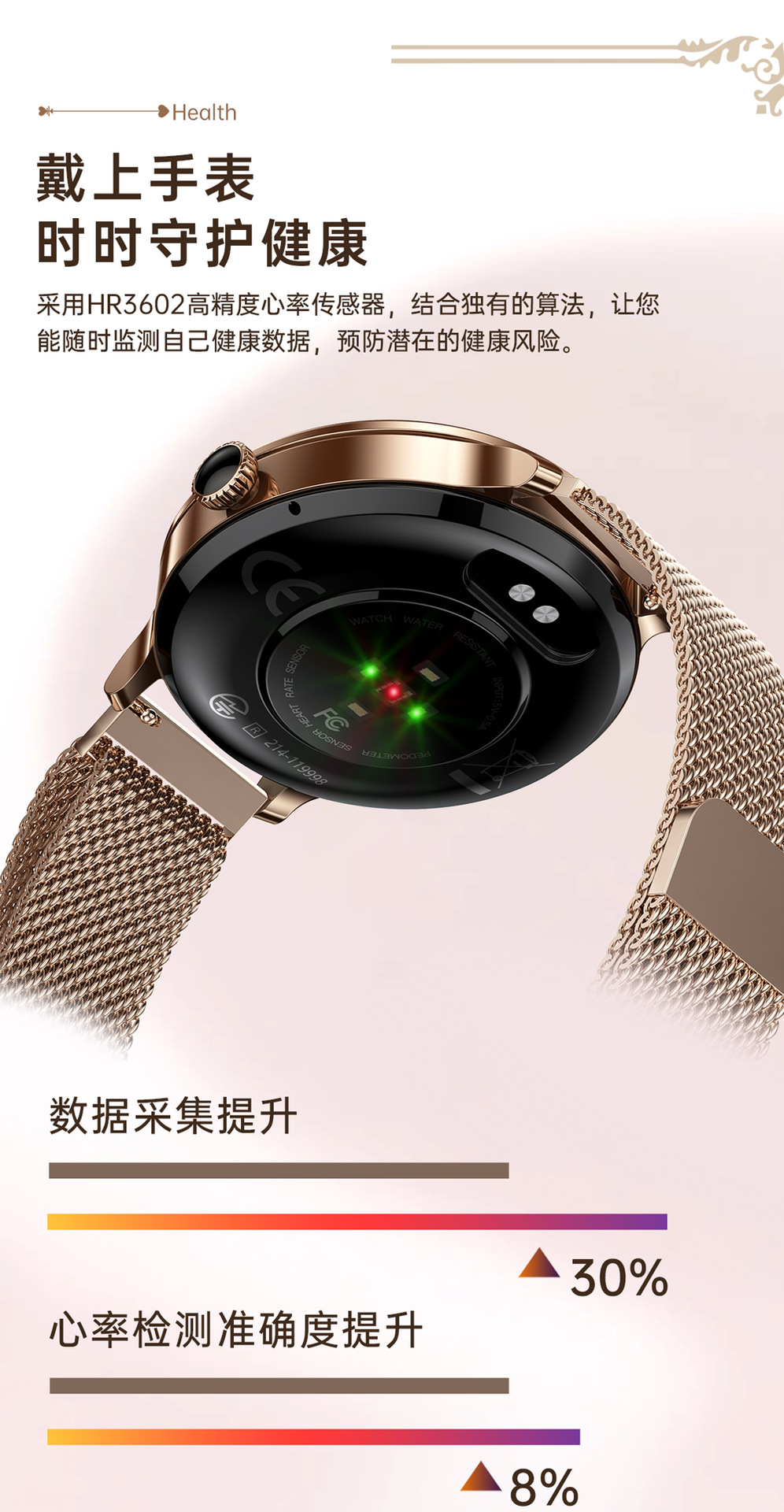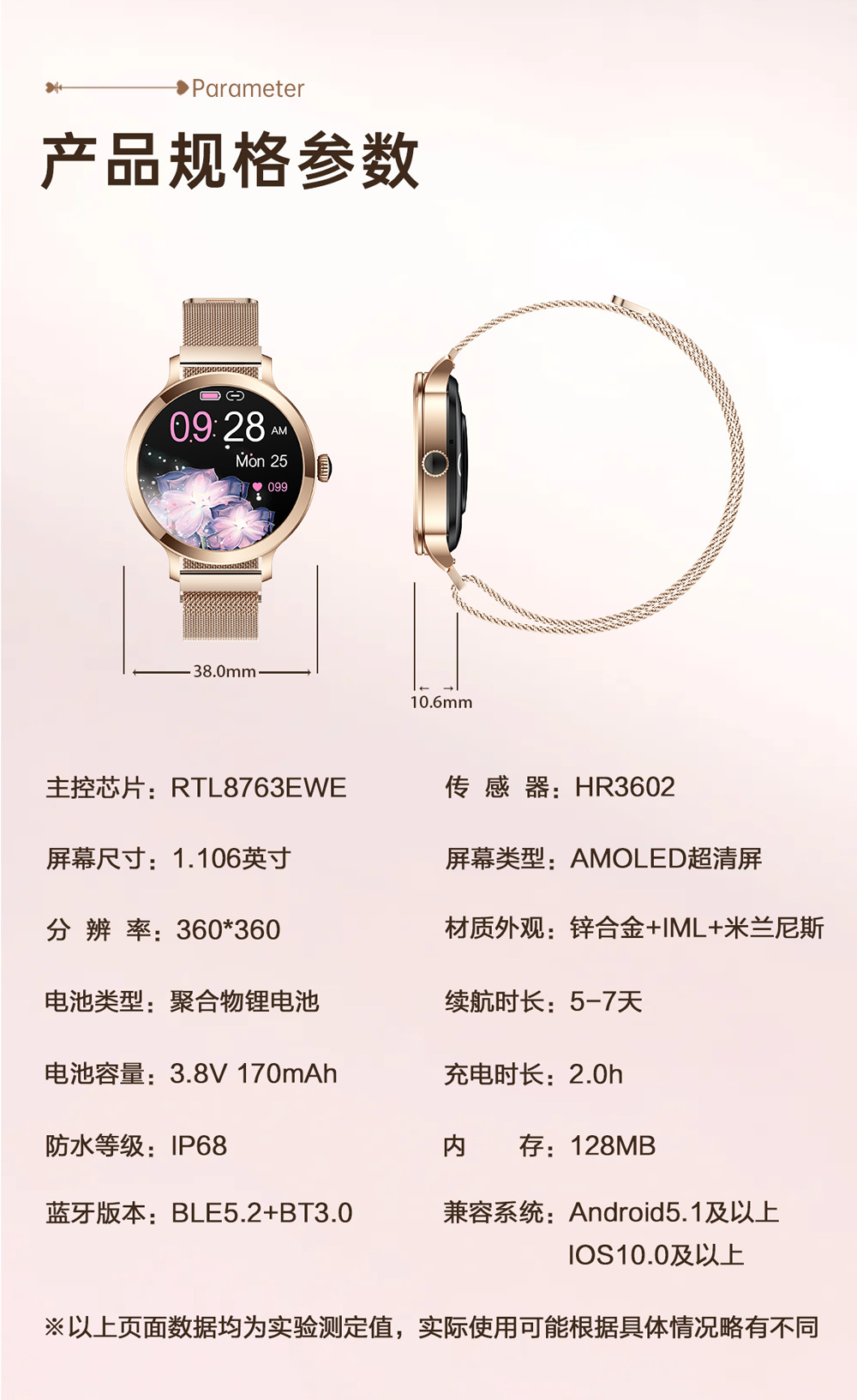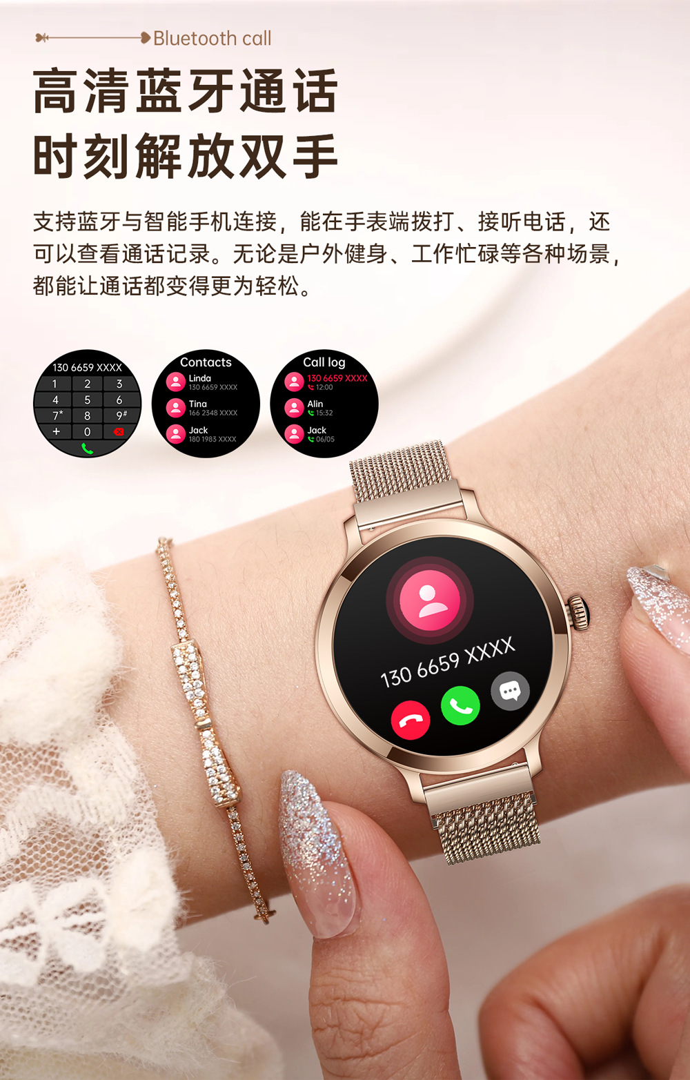 새로운 NX7 여성 스마트 워치 1.106 인치 AMOLED 화면 8763EWE 블루투스 통화 IP68 방수