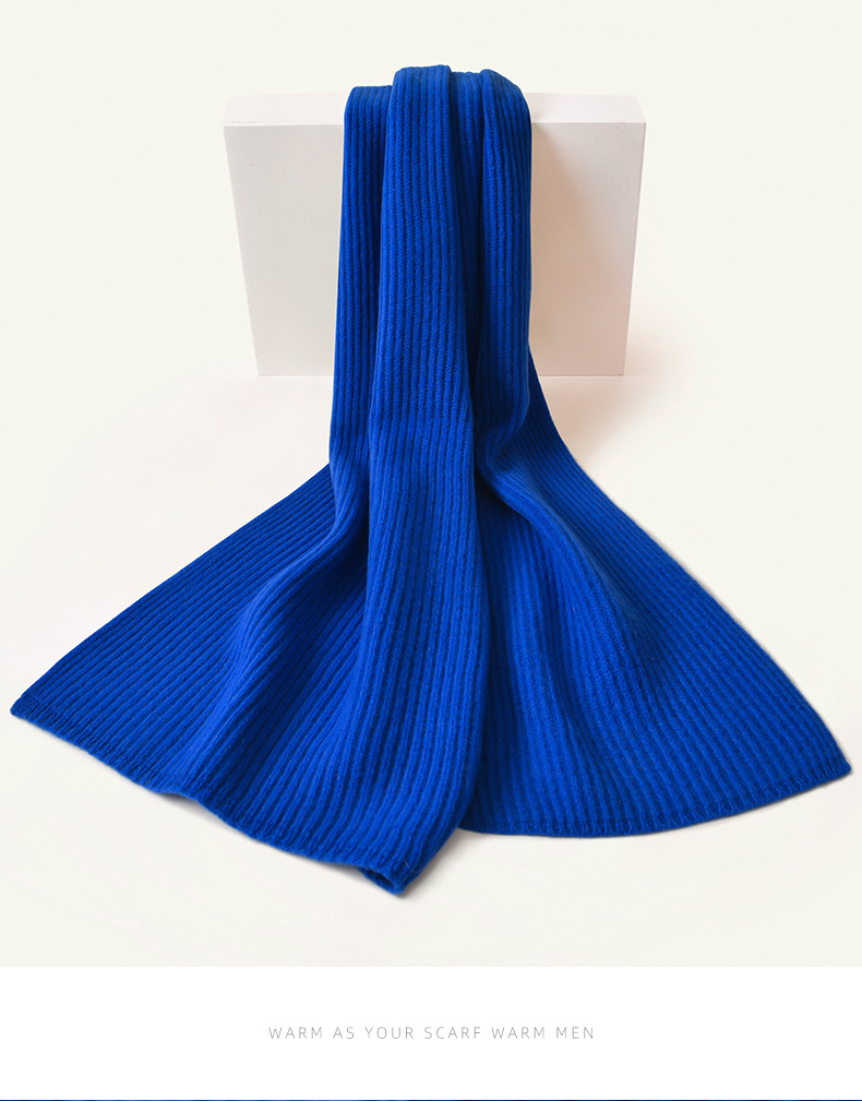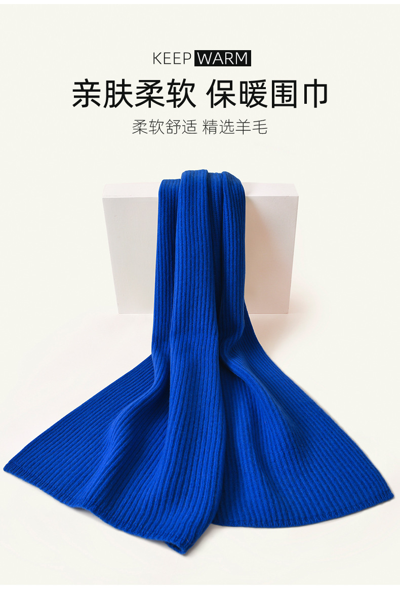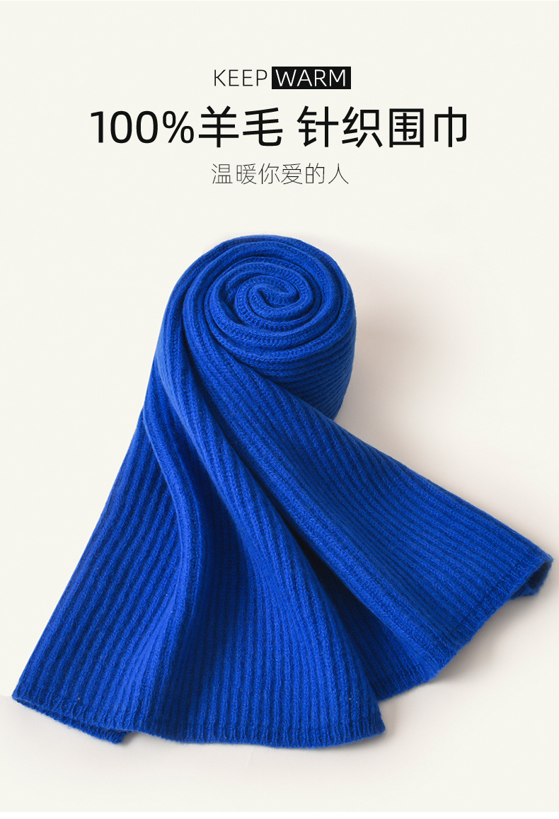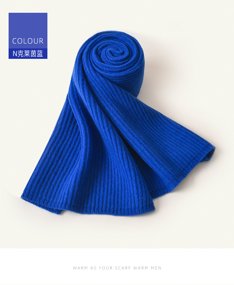 100% 울 클라인 블루 스카프 여성 겨울 새로운 단색 니트 패션 여자 친구 생일 선물을 위해 따뜻한스토어 가기