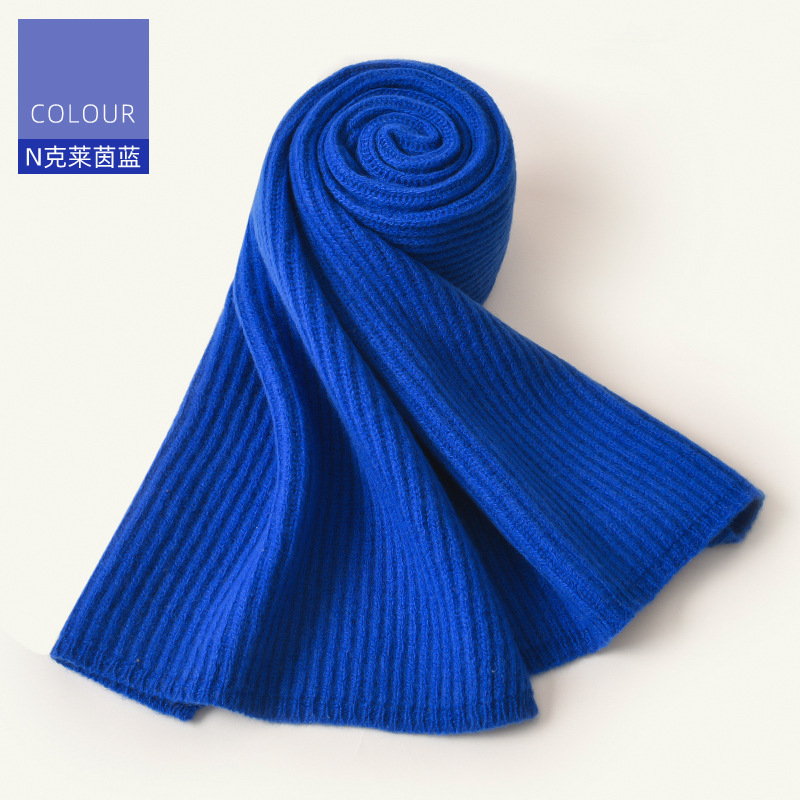 100% 울 클라인 블루 스카프 여성 겨울 새로운 단색 니트 패션 여자 친구 생일 선물을 위해 따뜻한