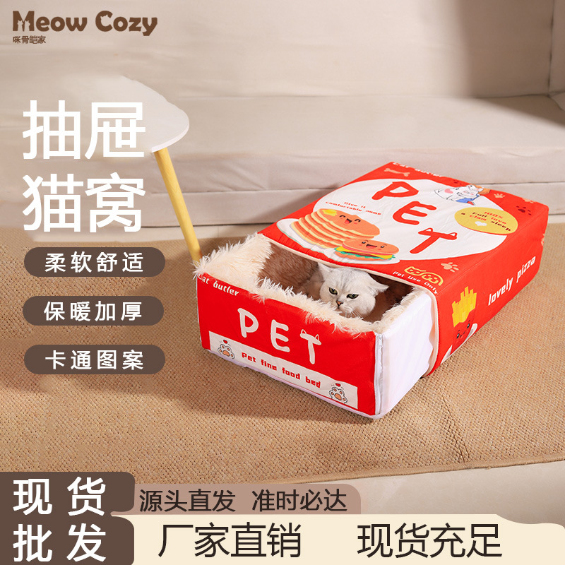 스낵 상자 고양이 둥지 애완 동물 고양이와 개 침대 직사각형 완전 밀폐형 안전 비스킷 상자 사계절 범용 애완 동물 둥지스토어 가기