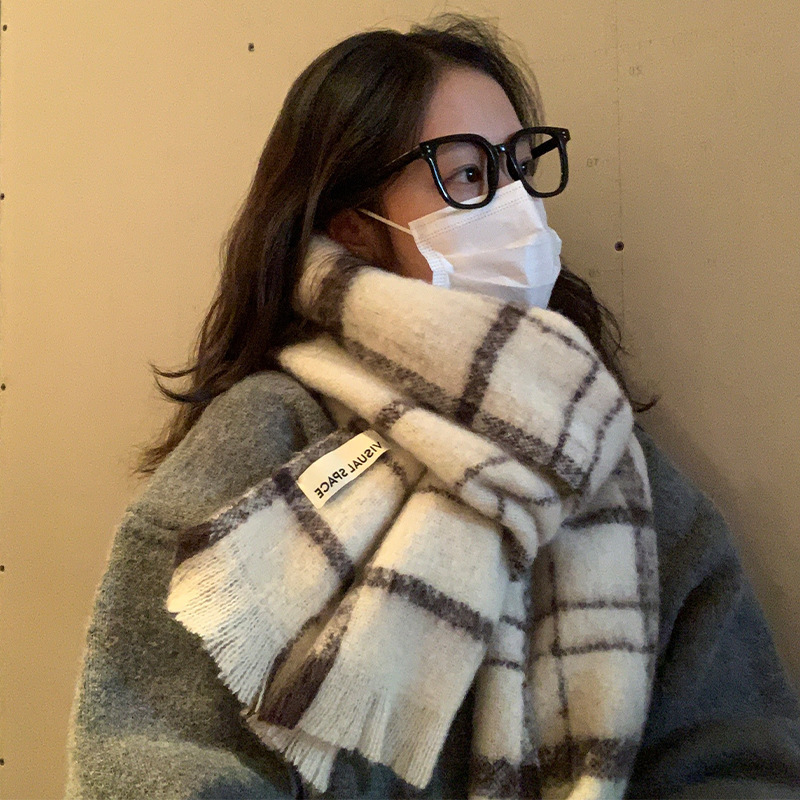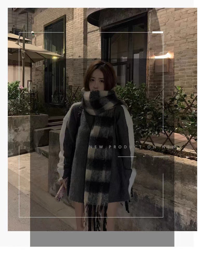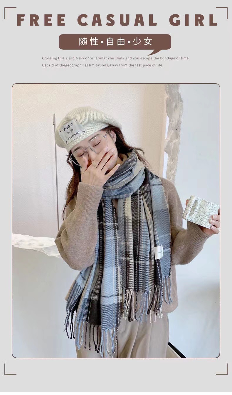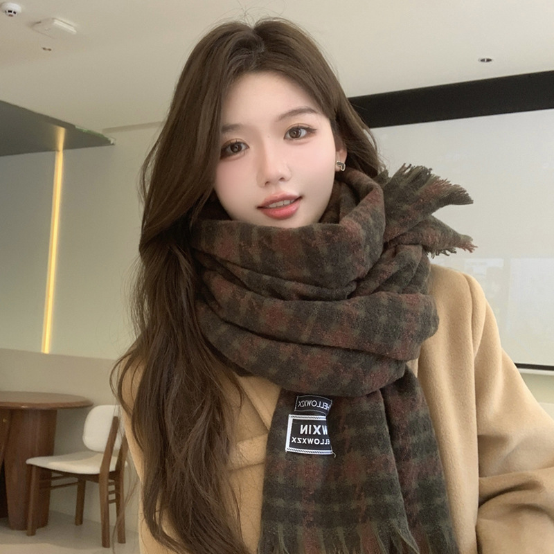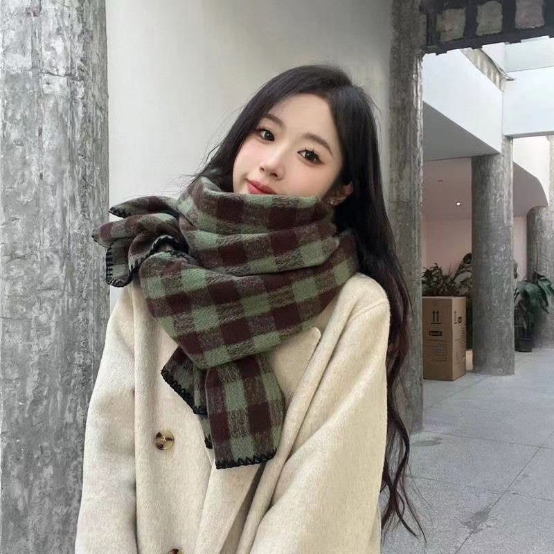 빈티지 그린 격자 무늬 스카프 여자 가을과 겨울 올매치 하이 엔드 성격 따뜻한 목도리 스카프 한국식 새로운스토어 가기
