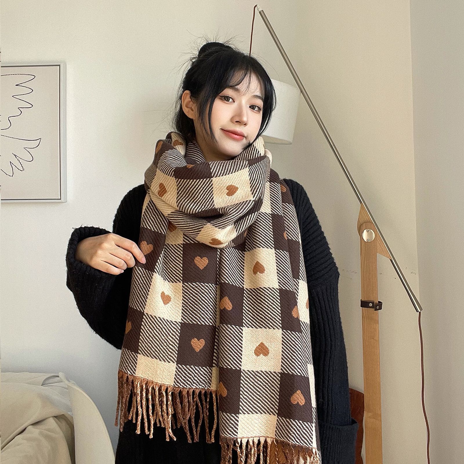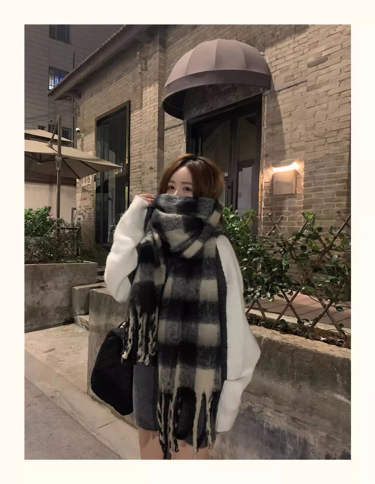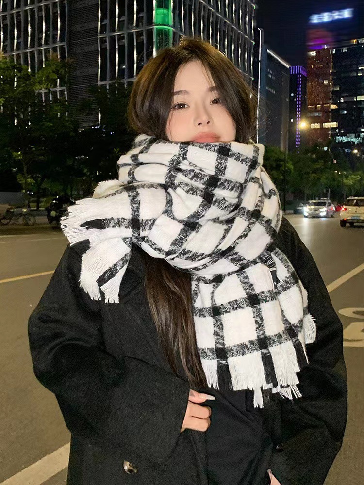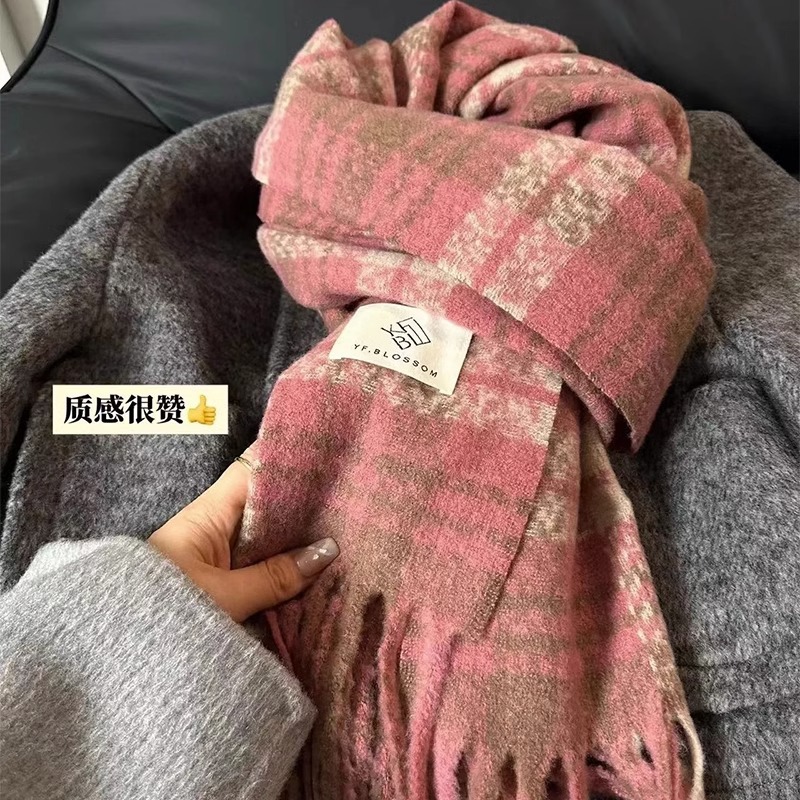 빈티지 그린 격자 무늬 스카프 여자 가을과 겨울 올매치 하이 엔드 성격 따뜻한 목도리 스카프 한국식 새로운스토어 가기