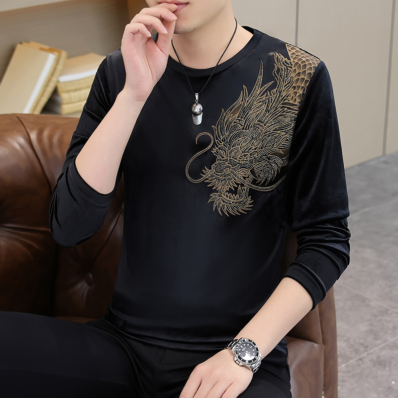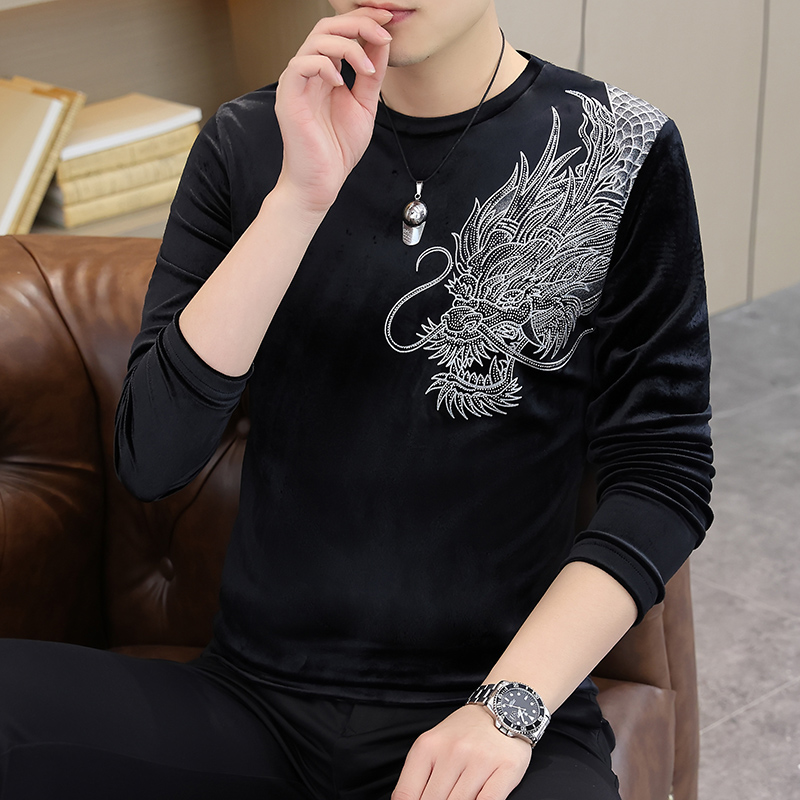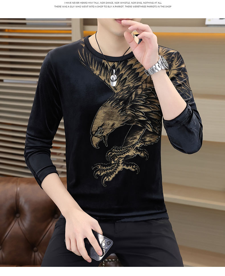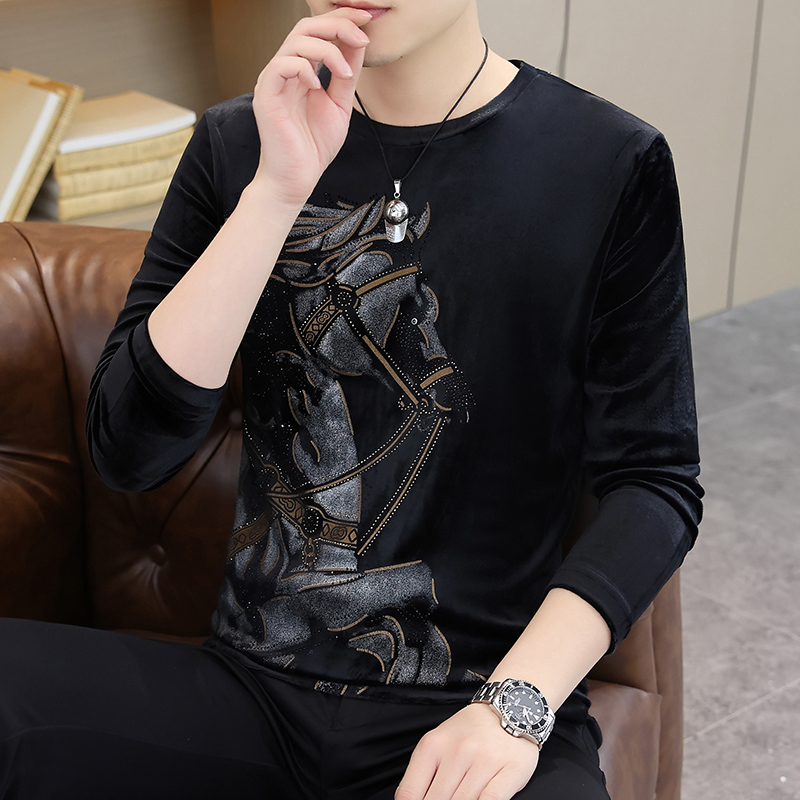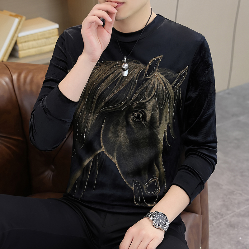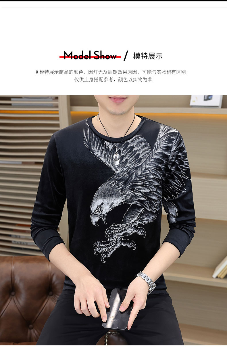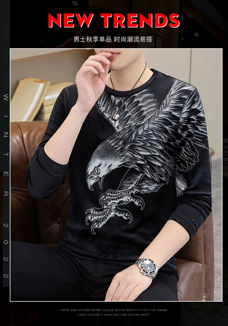유럽의 긴팔 티셔츠 남자의 봄과 가을 새로운 패션 핫 드릴링 캐주얼 베이스 셔츠 트렌디 브랜드 라운드 넥 가을 스웨트 셔츠