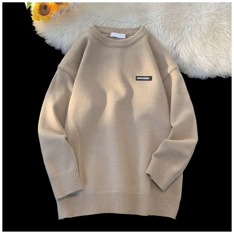 트렌디 한 패션 한국 스타일 캐주얼 라운드 넥 스웨터 남성 홍콩 스타일 새 라벨 학생 청소년 니트 스웨터 탑 1