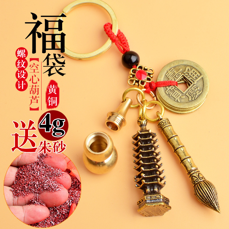 Wenchang 펜 타워 중공 조롱박 키 체인을 설치할 수 있습니다. cinnabar 모조 황동 모집 쌀 용감한 펜던트 작은 상품 도매스토어 가기