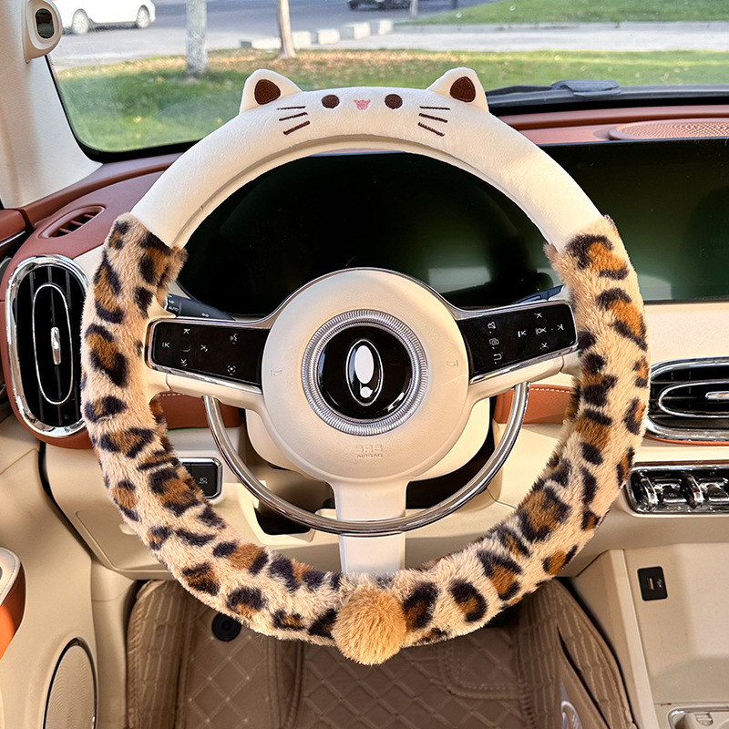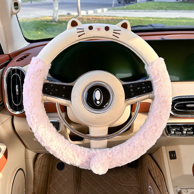 자동차 핸들 커버 겨울용 플러시 만화 자수 따뜻한 논슬립 핸들 커버 차량용 스포츠 핸들 커버스토어 가기