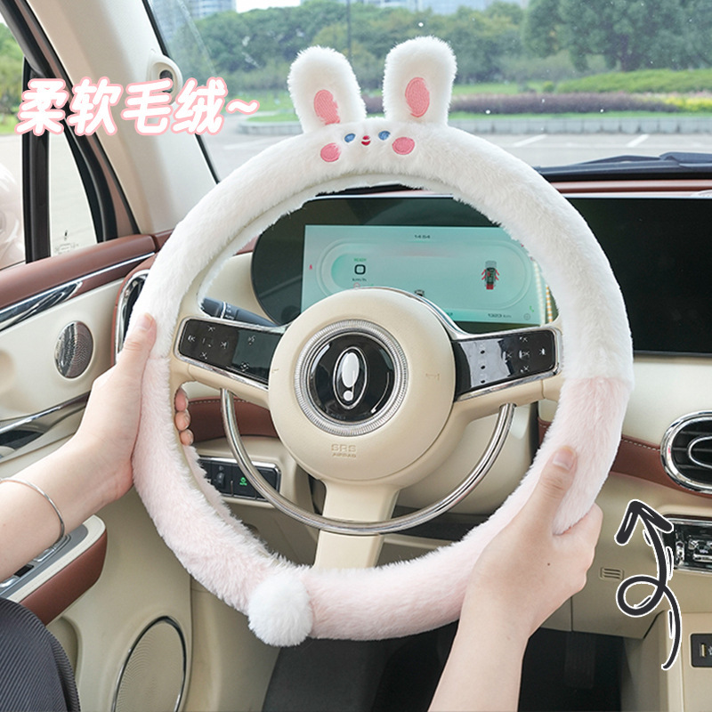 名称:汽车方向盘套冬季毛绒卡通刺绣保暖防滑方向盘把套车载运动型把套