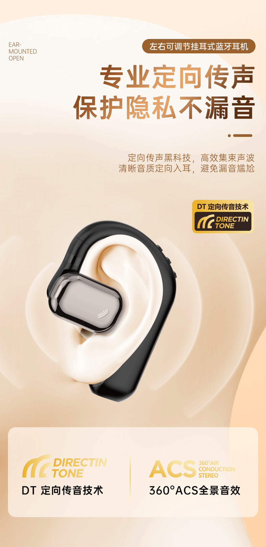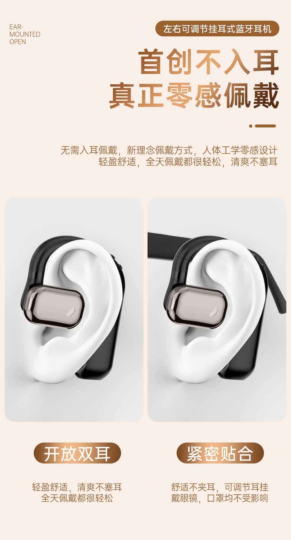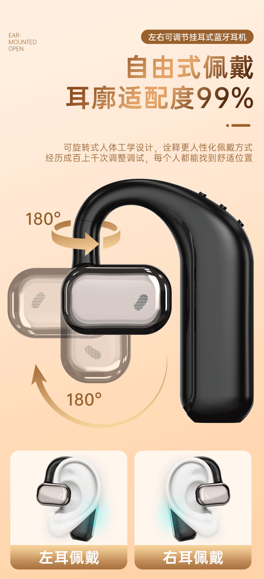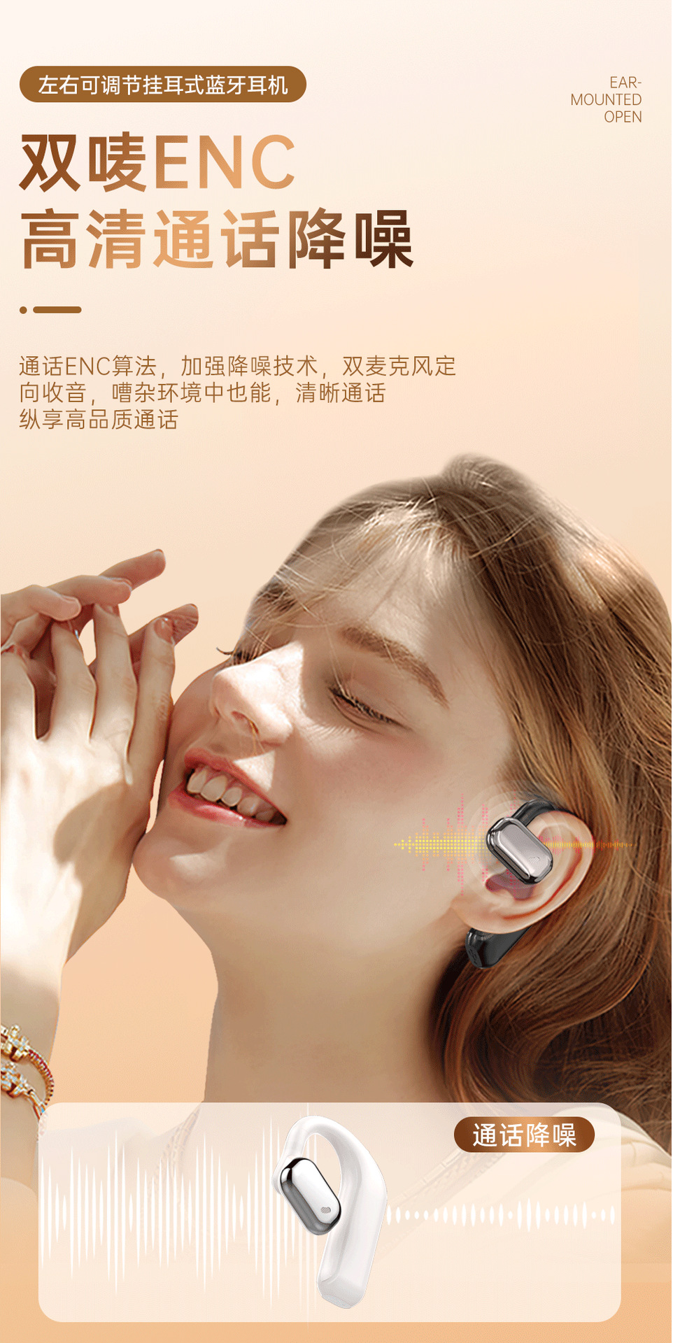 OWS 오픈형 비즈니스 통화용 블루투스 이어폰, 대용량, 귀걸이형, ENC 소음 감소, 테이크아웃 전용