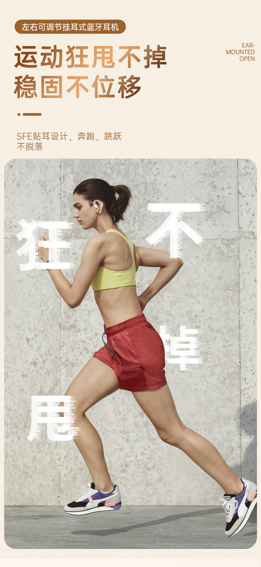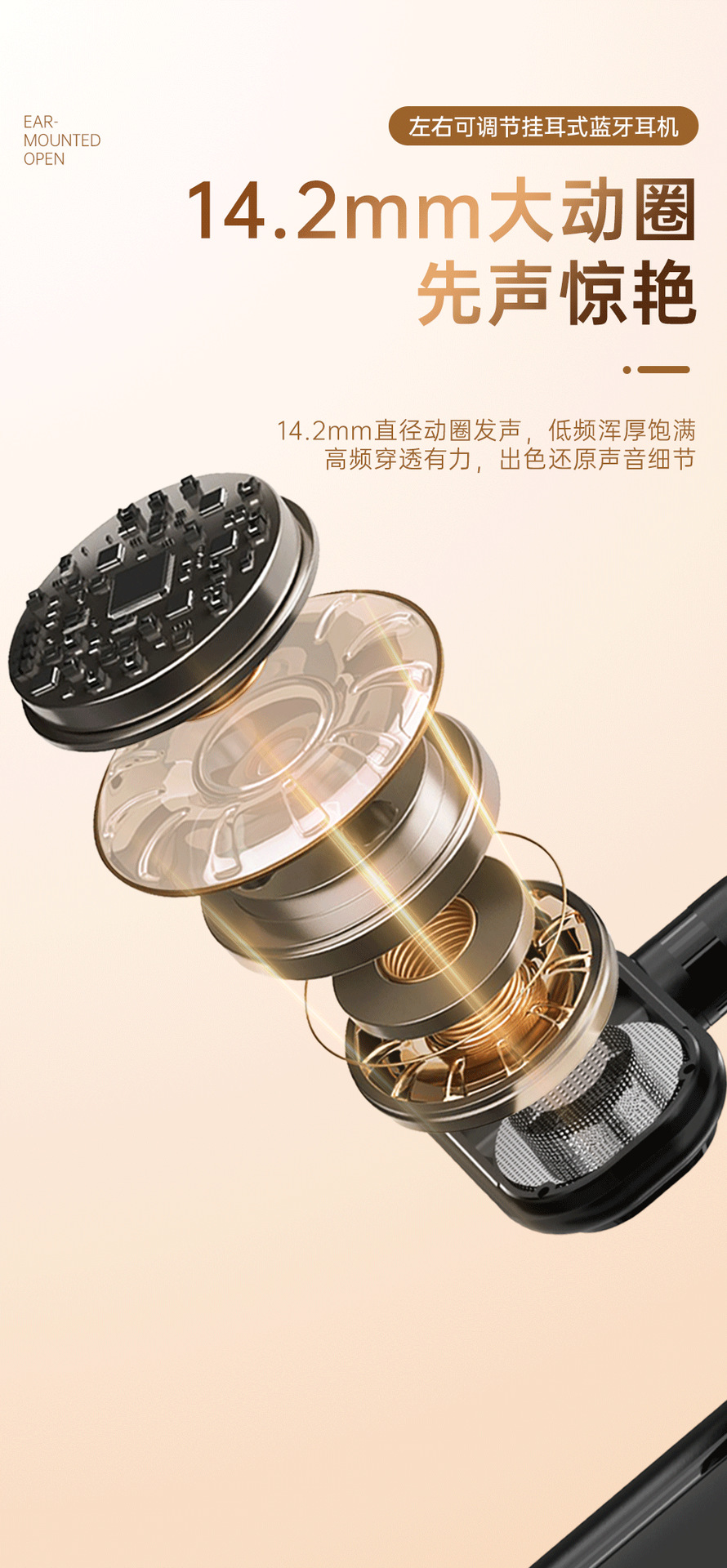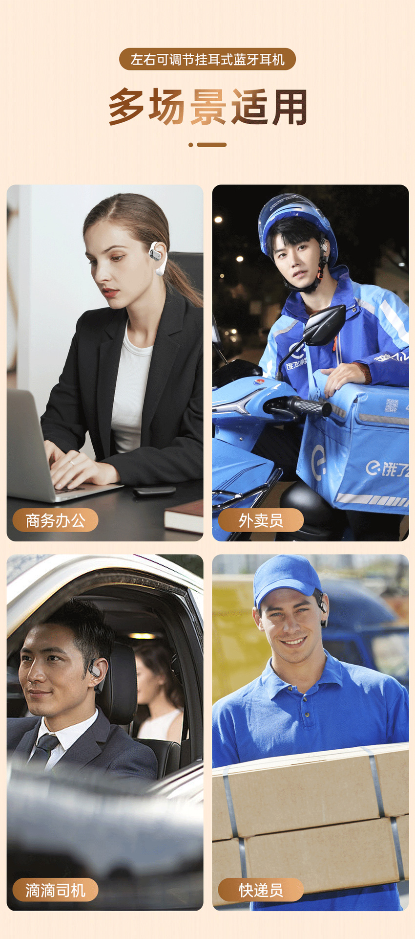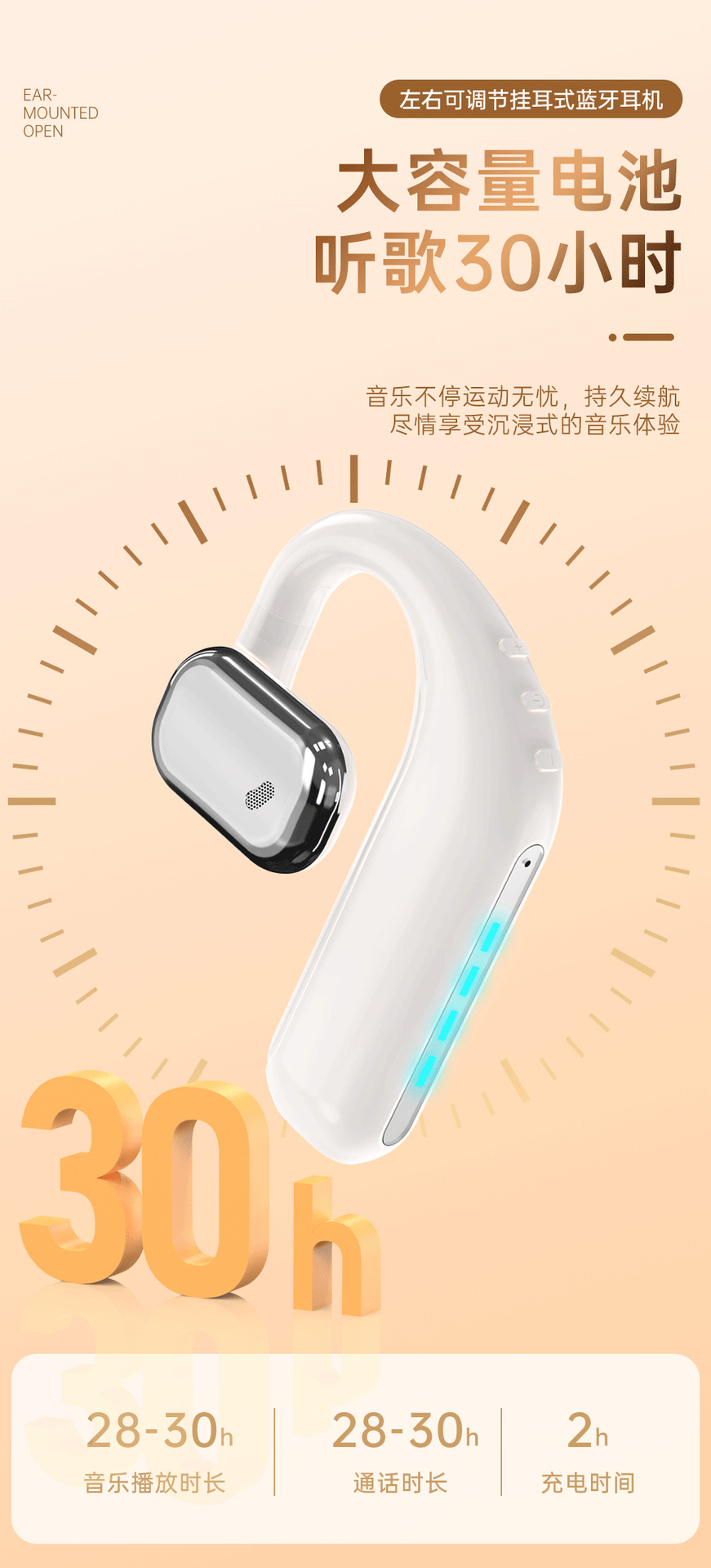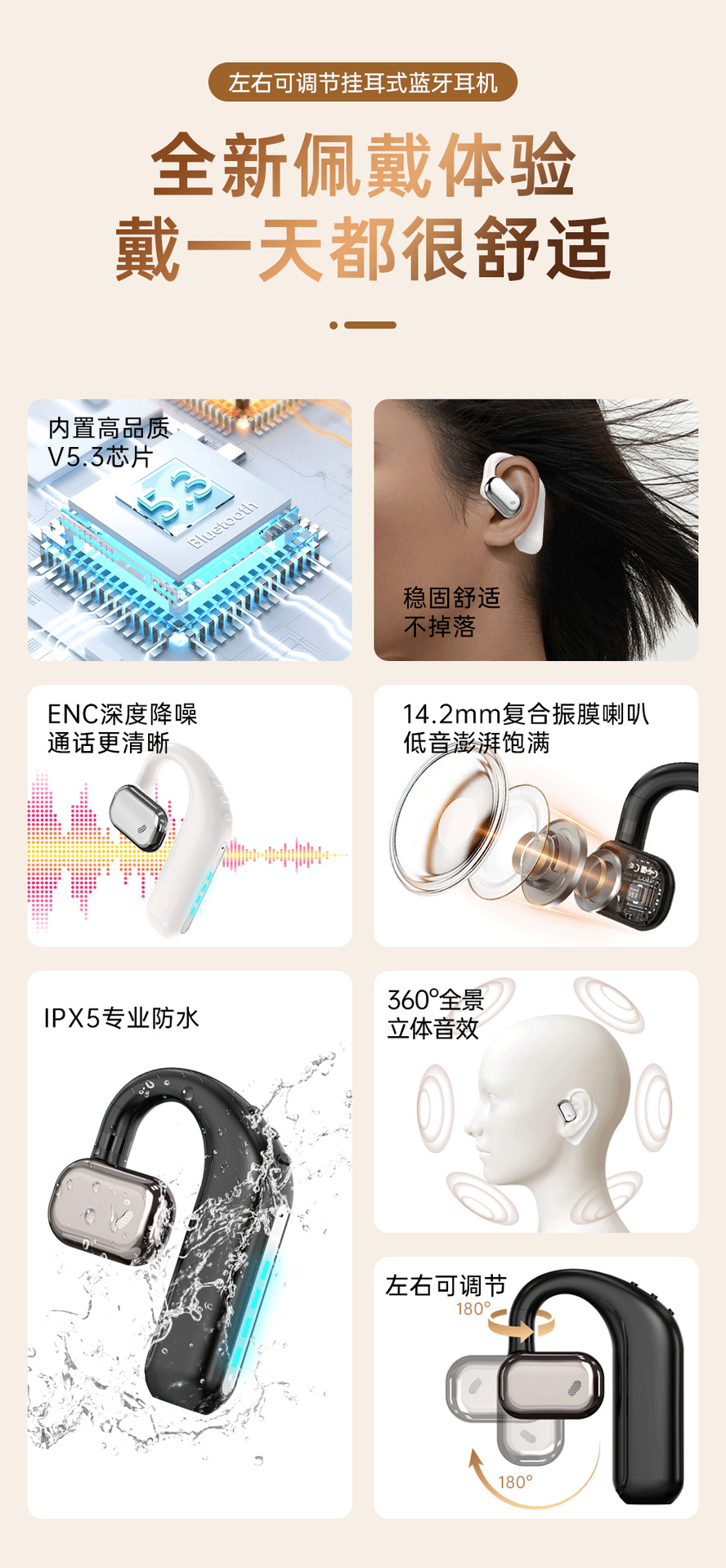 OWS 오픈형 비즈니스 통화용 블루투스 이어폰, 대용량, 귀걸이형, ENC 소음 감소, 테이크아웃 전용
