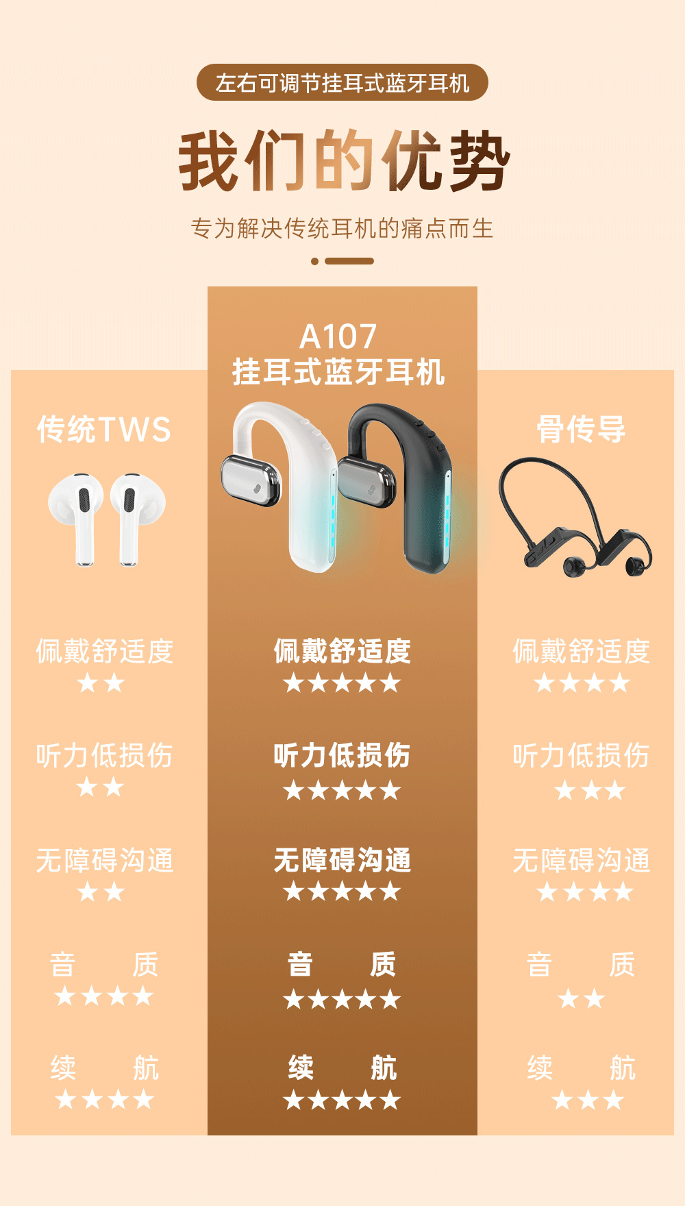 OWS 오픈형 비즈니스 통화용 블루투스 이어폰, 대용량, 귀걸이형, ENC 소음 감소, 테이크아웃 전용스토어 가기