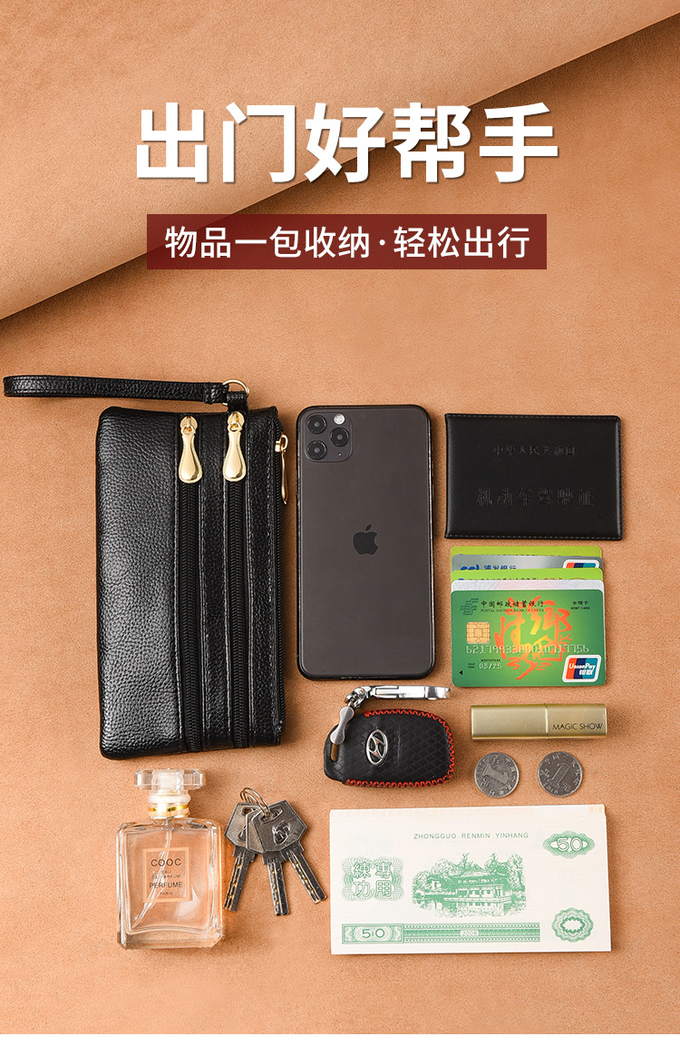 크로스 보더 지갑 여성용 긴 부드러운 가죽 리치 패턴 클러치 백 대용량 보관 가방 지퍼 동전 가방 휴대 전화 가방