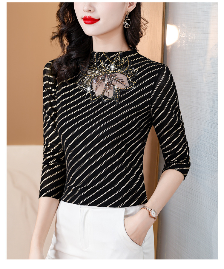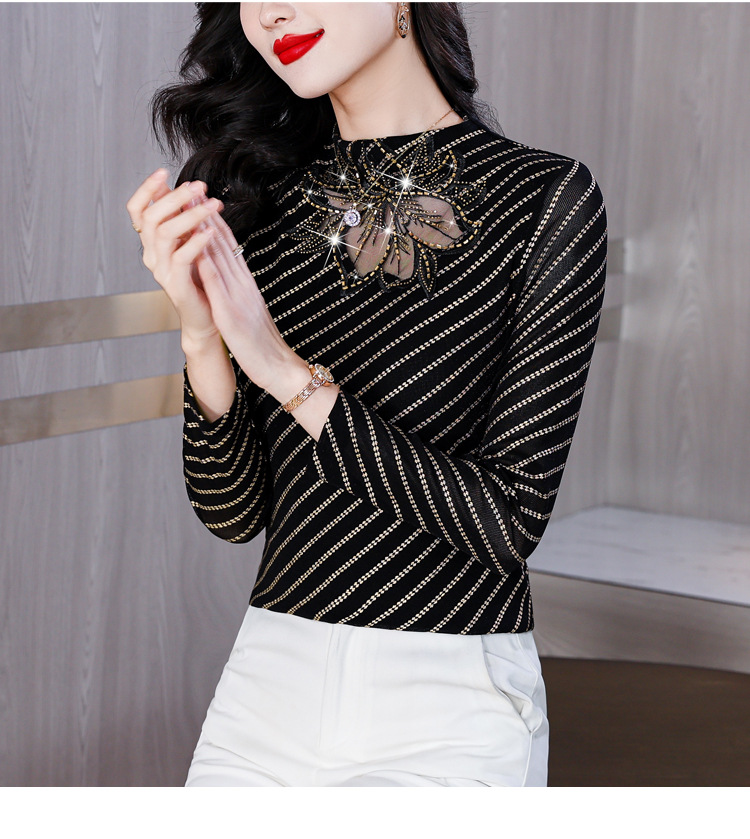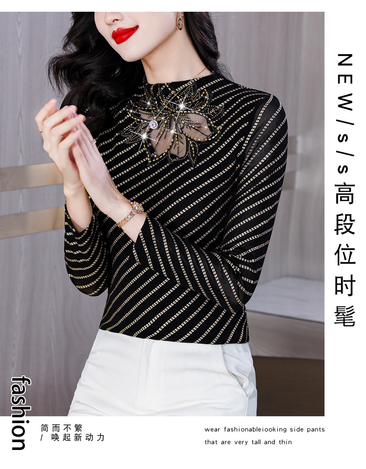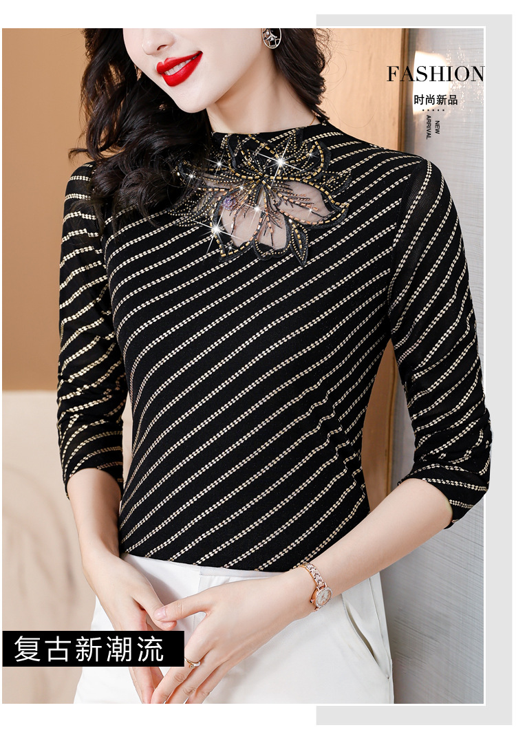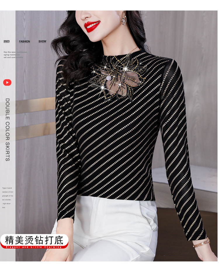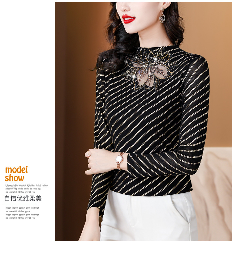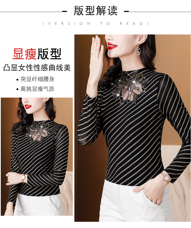 2023 가을과 겨울 새로운 핫 드릴링 따뜻한 기모 바닥 셔츠 외국 스타일 조커 반 하이 칼라 슬림 바닥 티셔츠 도매스토어 가기