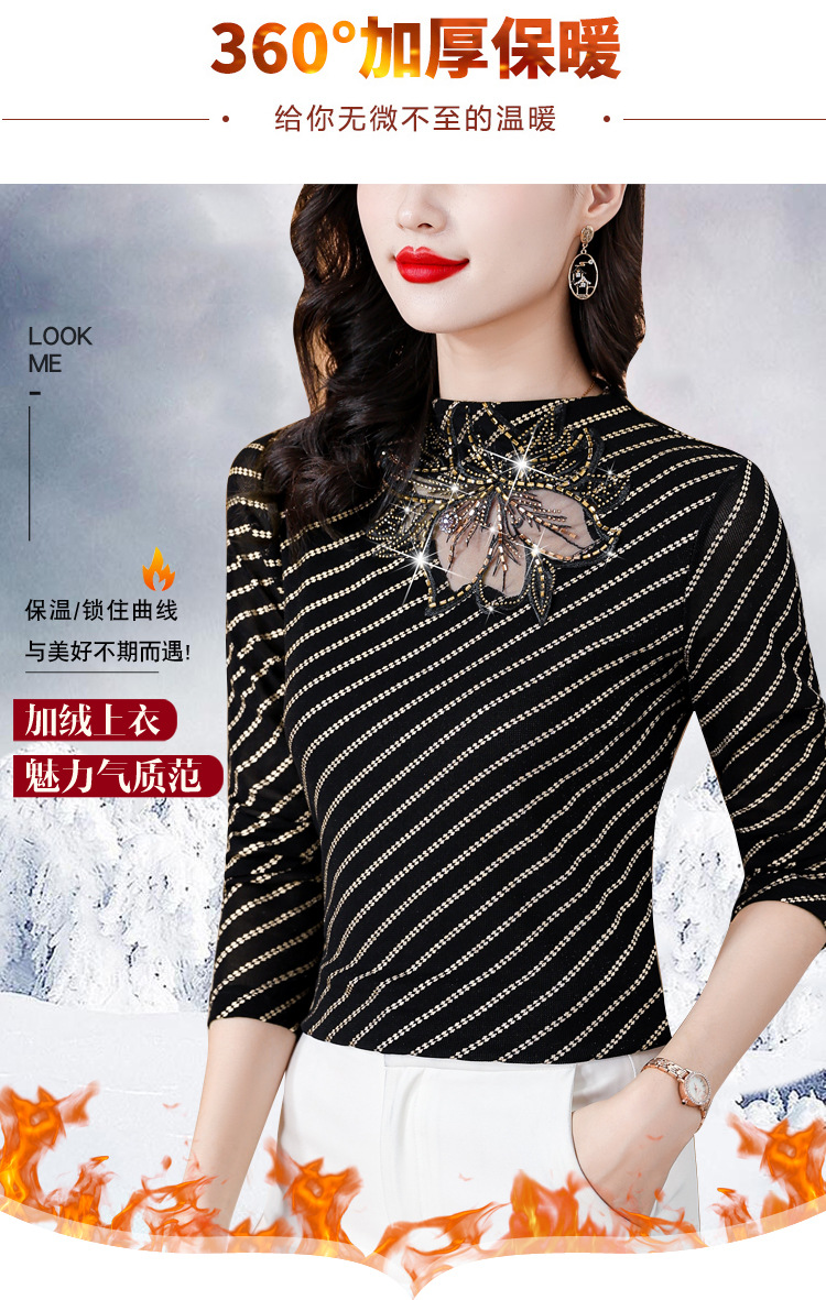 2023 가을과 겨울 새로운 핫 드릴링 따뜻한 기모 바닥 셔츠 외국 스타일 조커 반 하이 칼라 슬림 바닥 티셔츠 도매