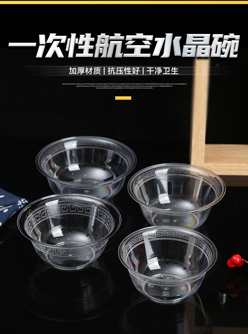일회용 항공 크리스탈 그릇 크리스탈 투명 하드 플라스틱 항공 그릇 레스토랑 실행 매트 홈 웨딩 연회 그릇