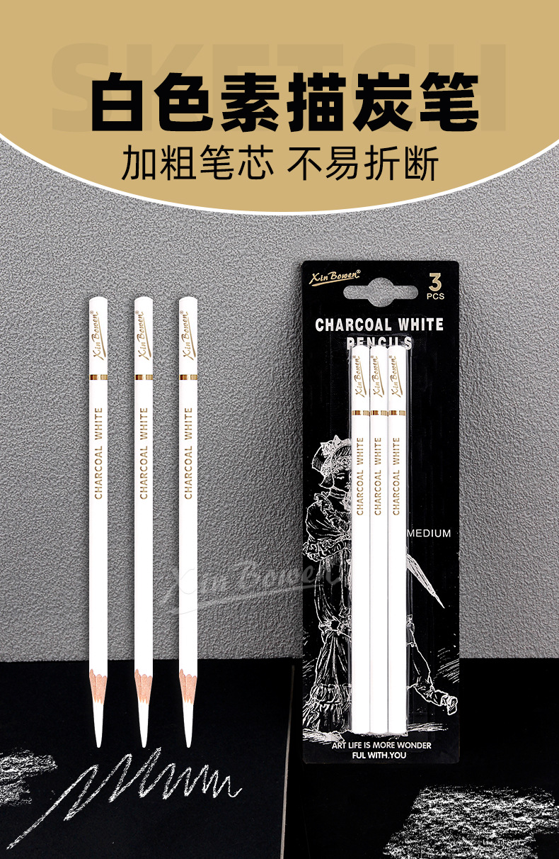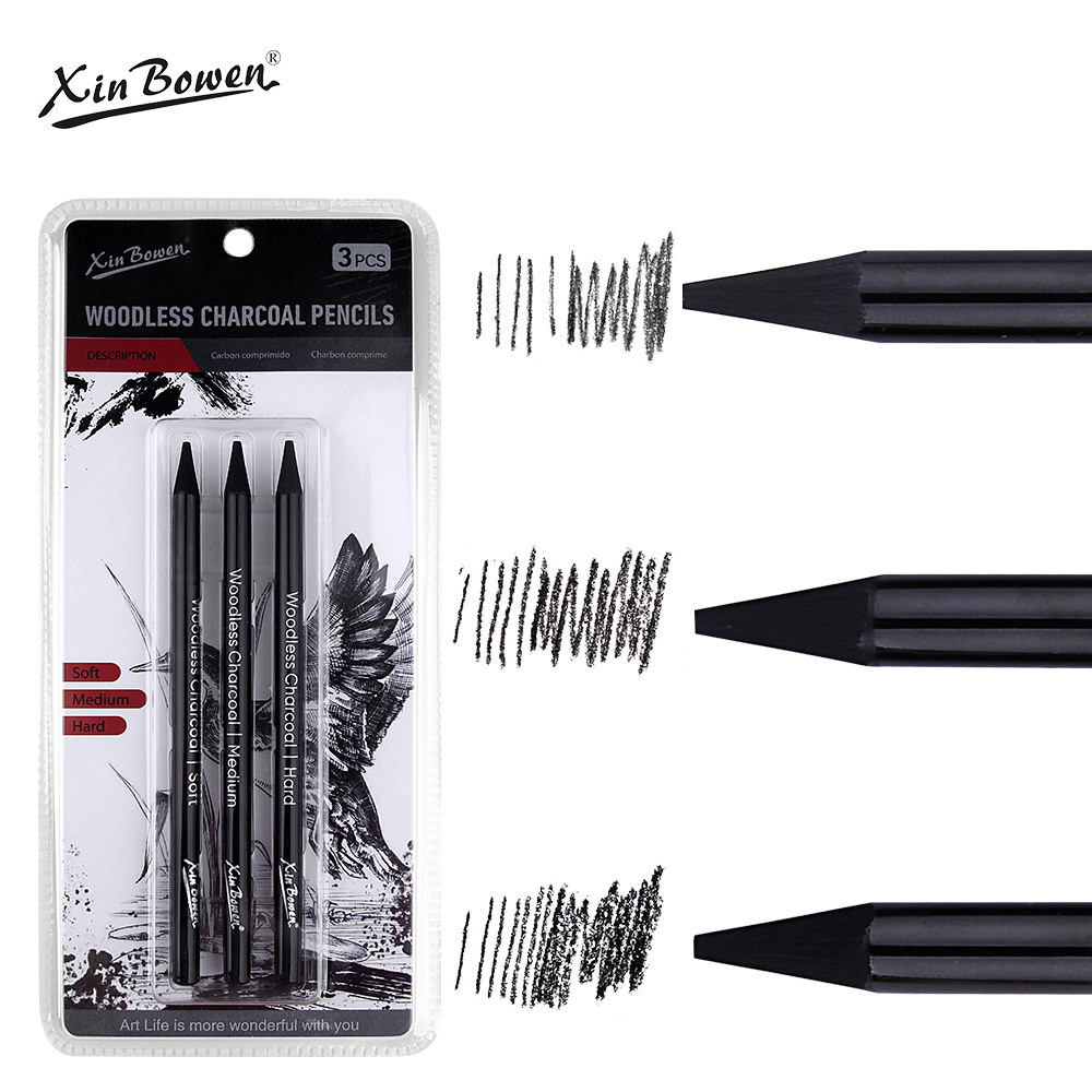 크로스 보더 화이트 숯 연필 카본 페인팅 연필 3 세트 소프트 미디엄 하드 아트 학생 스케치 고광택 조명 숯 페인팅 펜스토어 가기