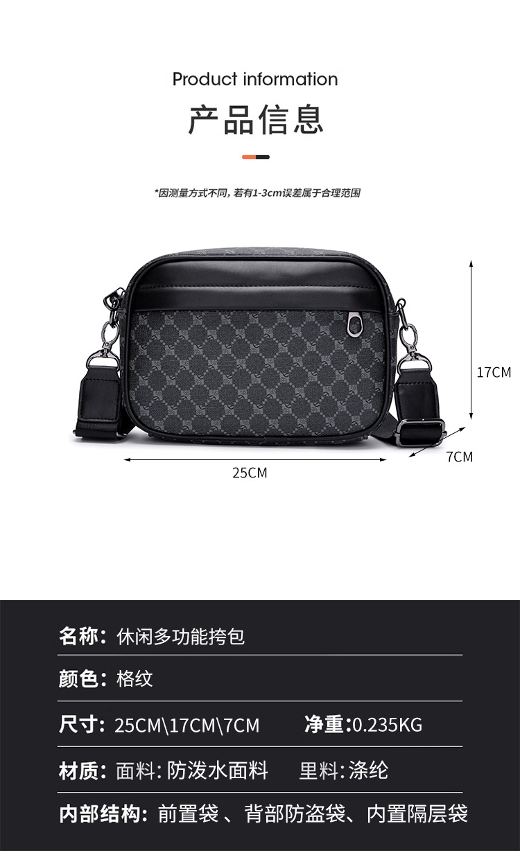 트렌디 브랜드 남성 가방 하이 엔드 센스 크로스바디 남성 가방 가죽 트렌디 백팩 캐주얼 숄더백 스몰 스퀘어 백 사진 가방스토어 가기
