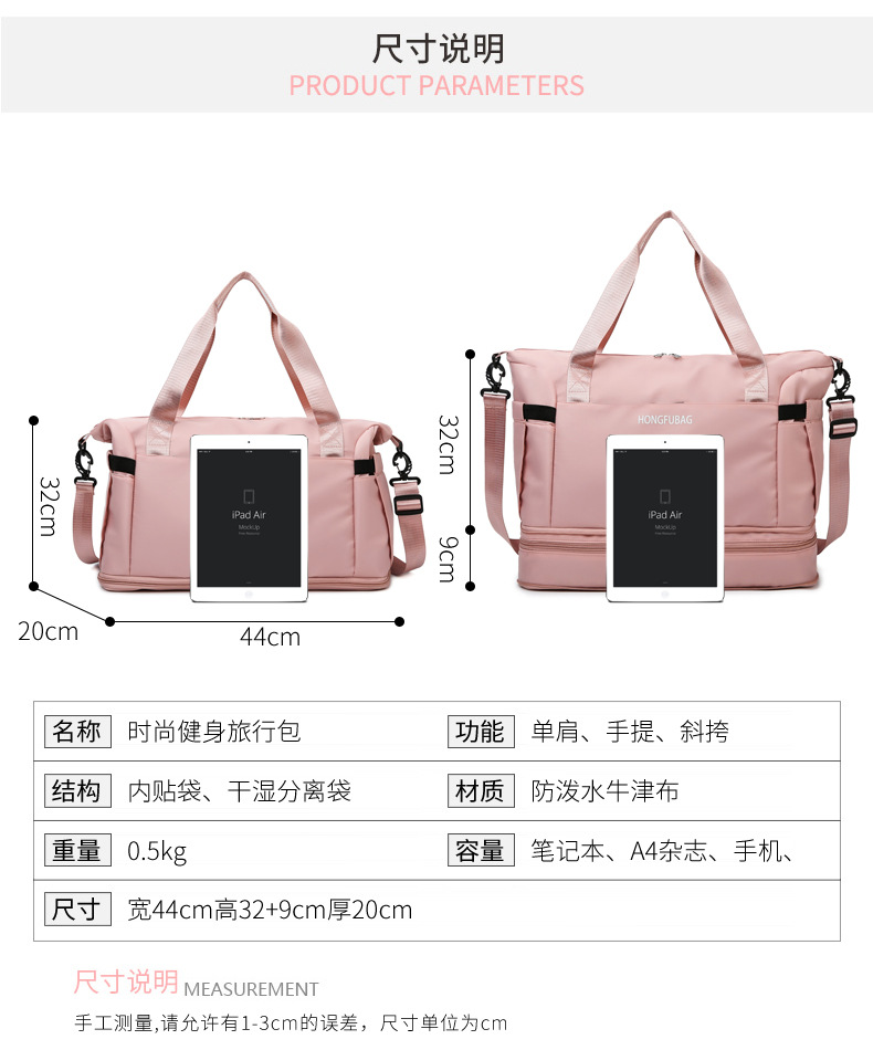 여행 가방 여성용 대용량 확장 수하물 가방 보관 가방 요가 가방 건조 및 습식 분리 스포츠 피트니스 가방