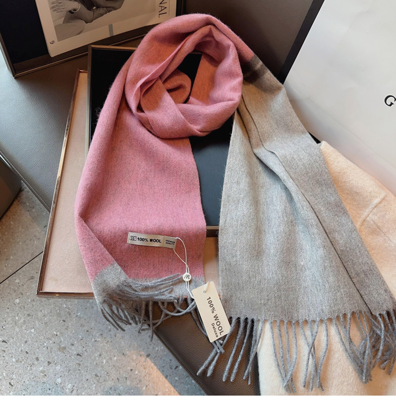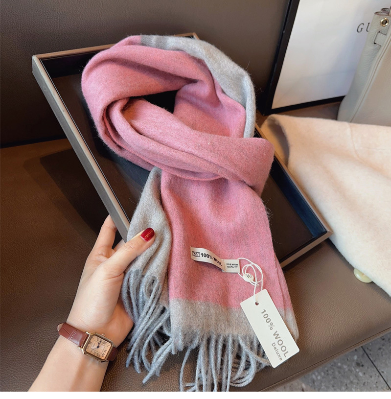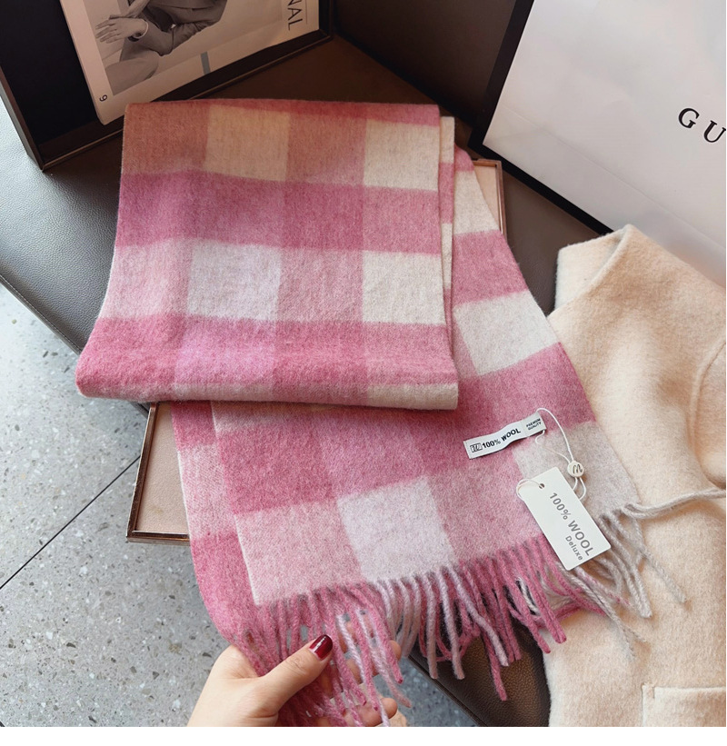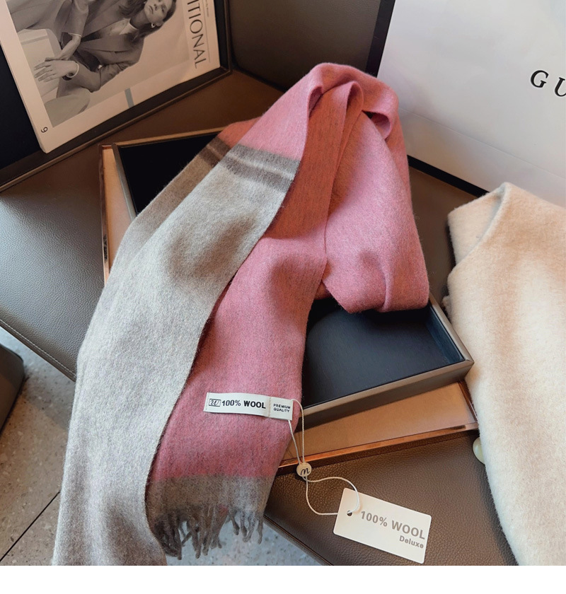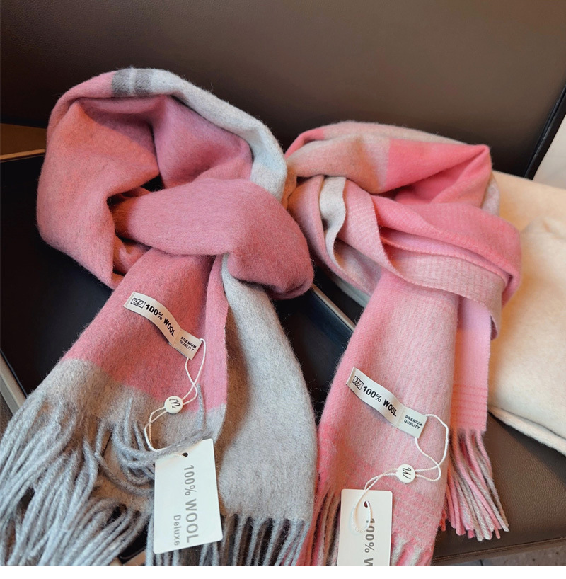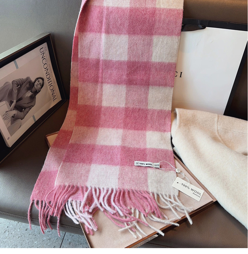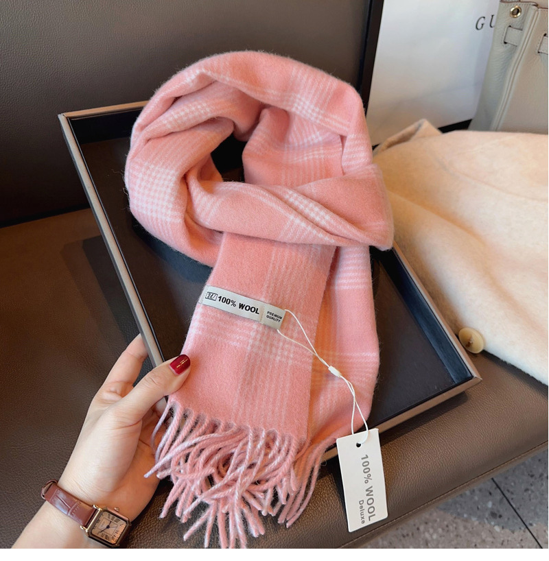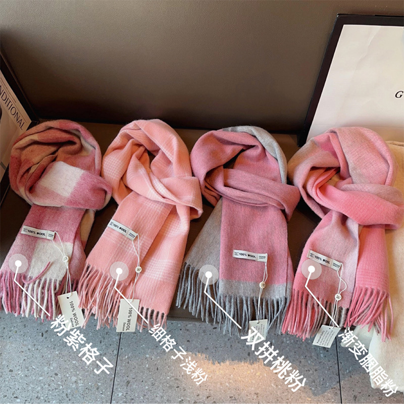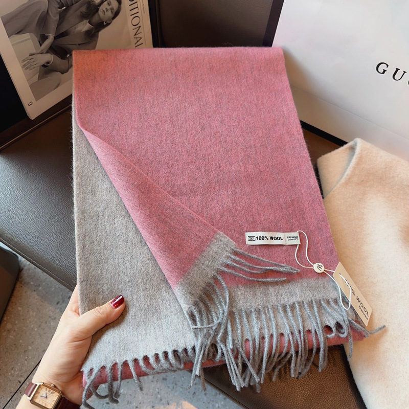 Wool100 % 순수 울 고급 풀 스타일 핑크 목도리 긴 따뜻한 스카프 여성의 가을과 겨울 양면 스카프스토어 가기
