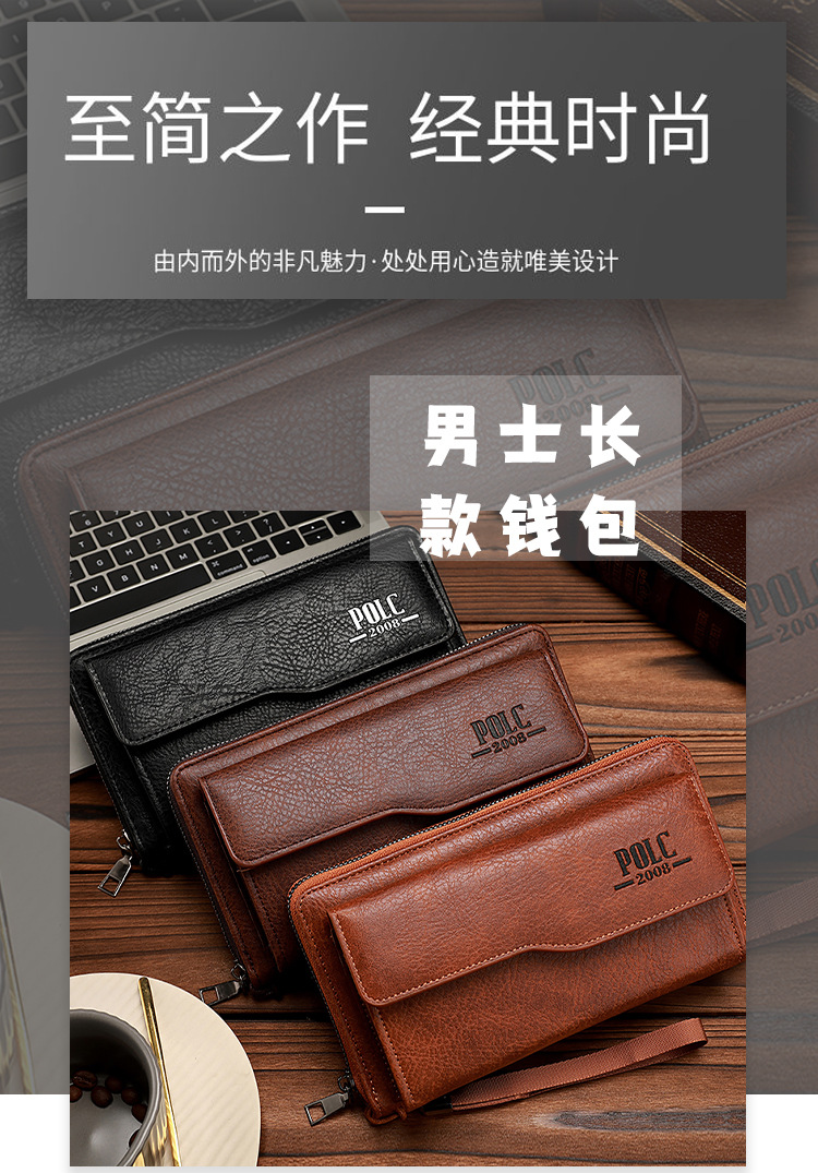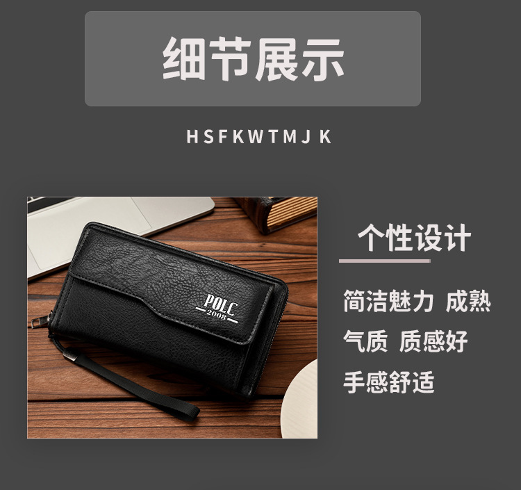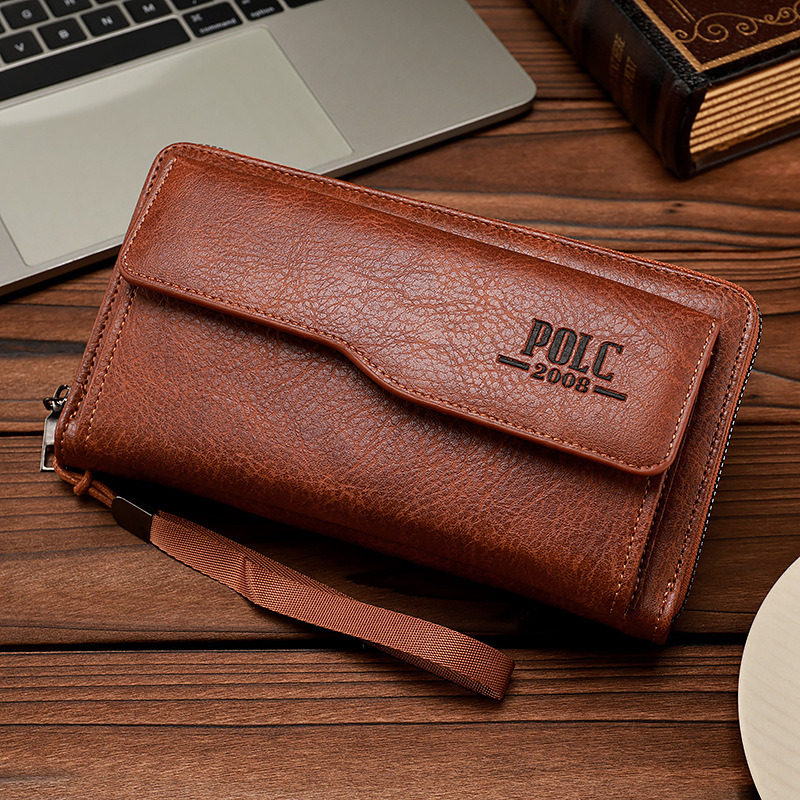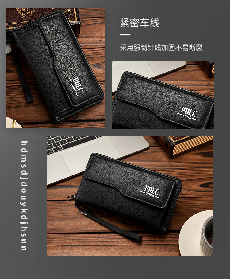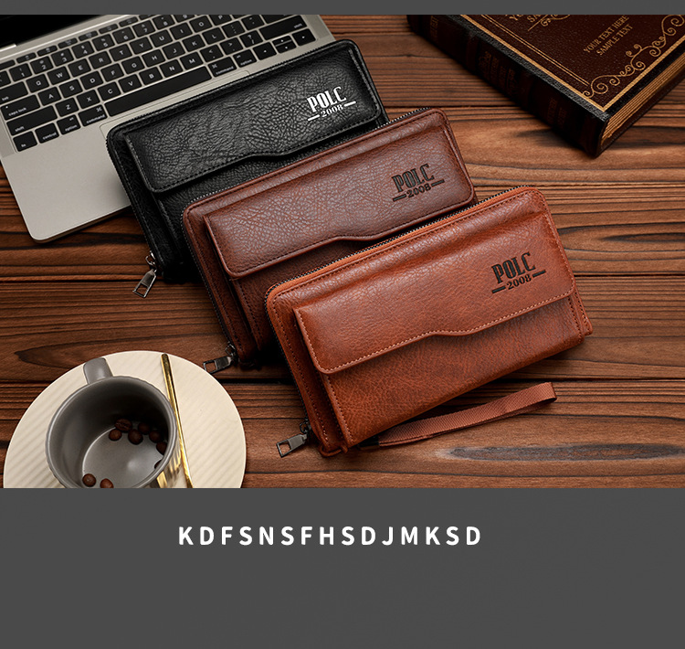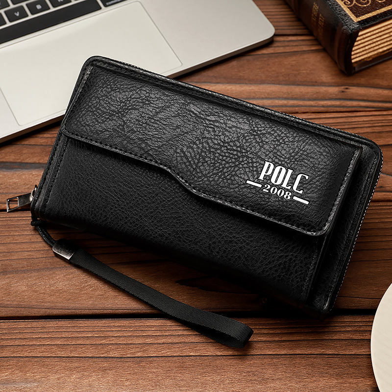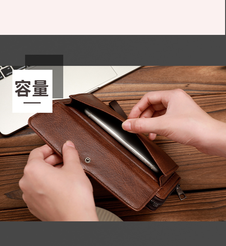 남성용 긴 지갑 비즈니스 크로스 보더 클러치 백 남성용 pu 멀티 카드 지갑 대용량 휴대용 휴대 전화 가방 New