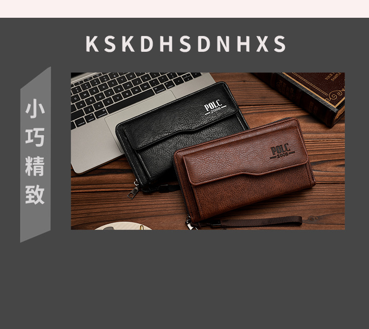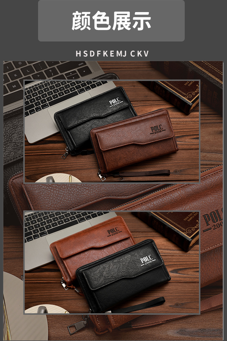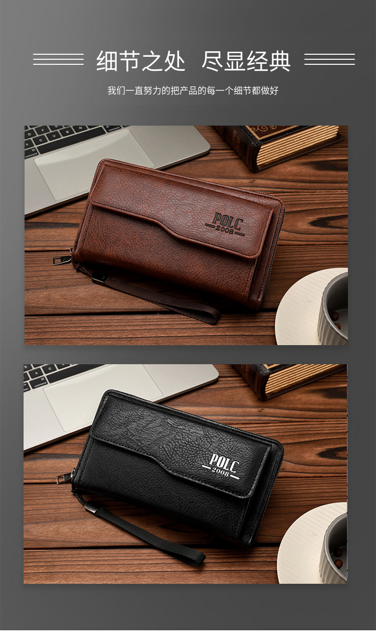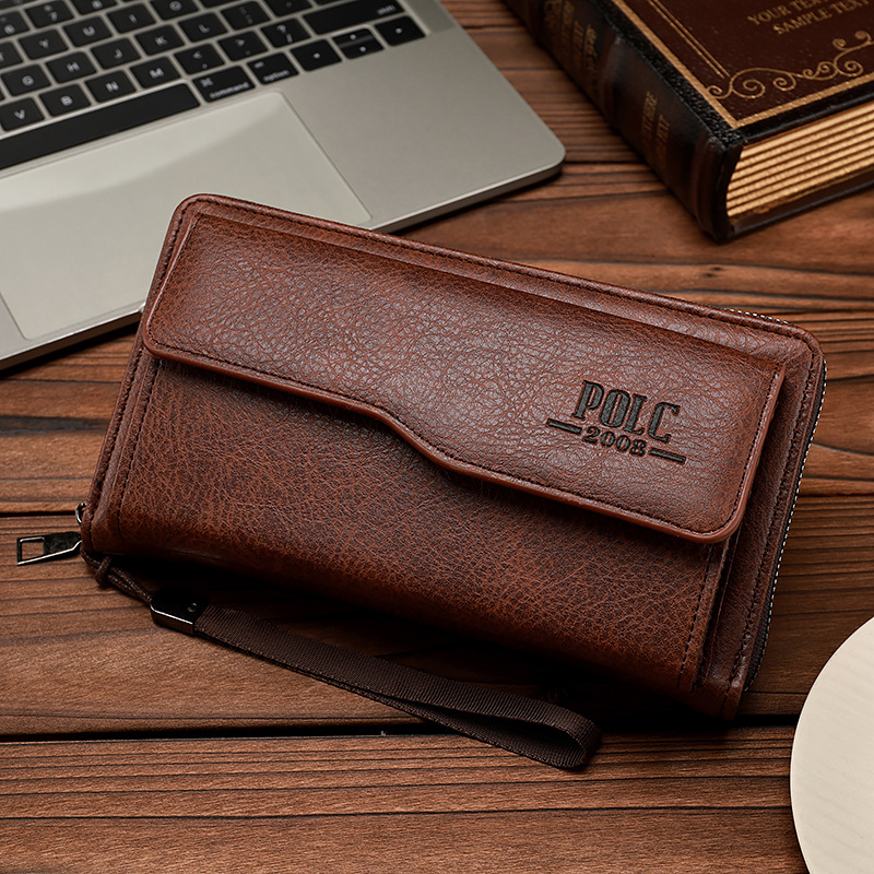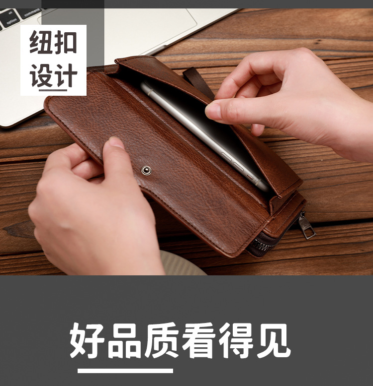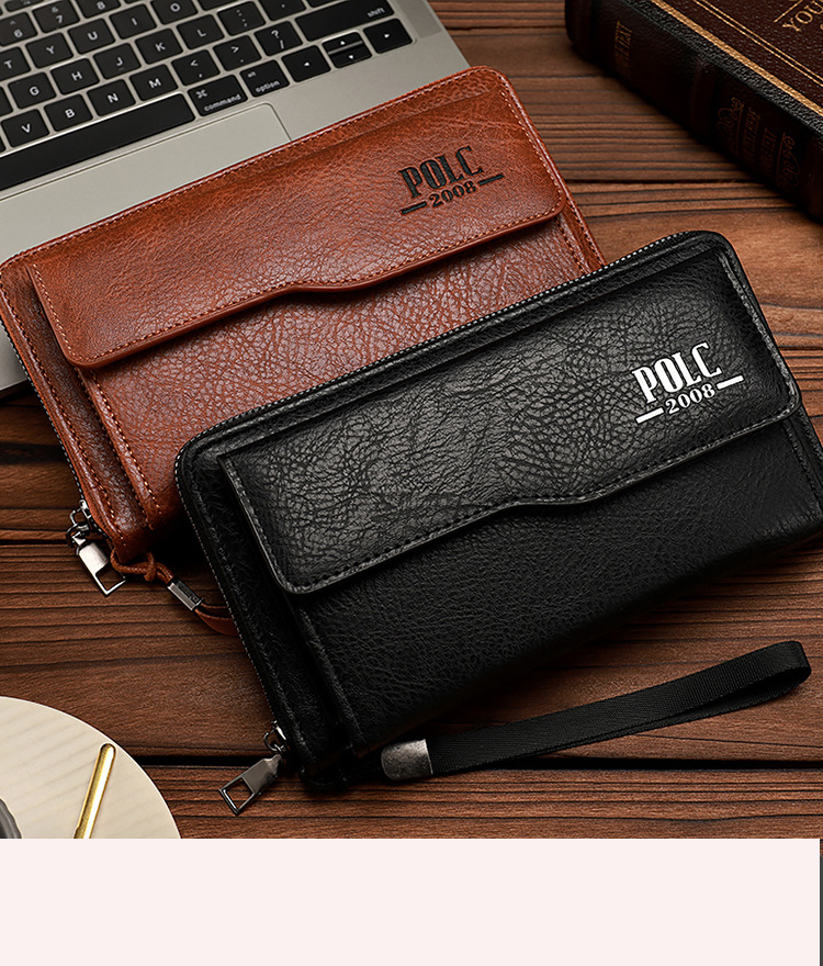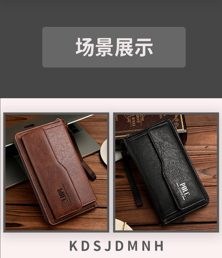 남성용 긴 지갑 비즈니스 크로스 보더 클러치 백 남성용 pu 멀티 카드 지갑 대용량 휴대용 휴대 전화 가방 New