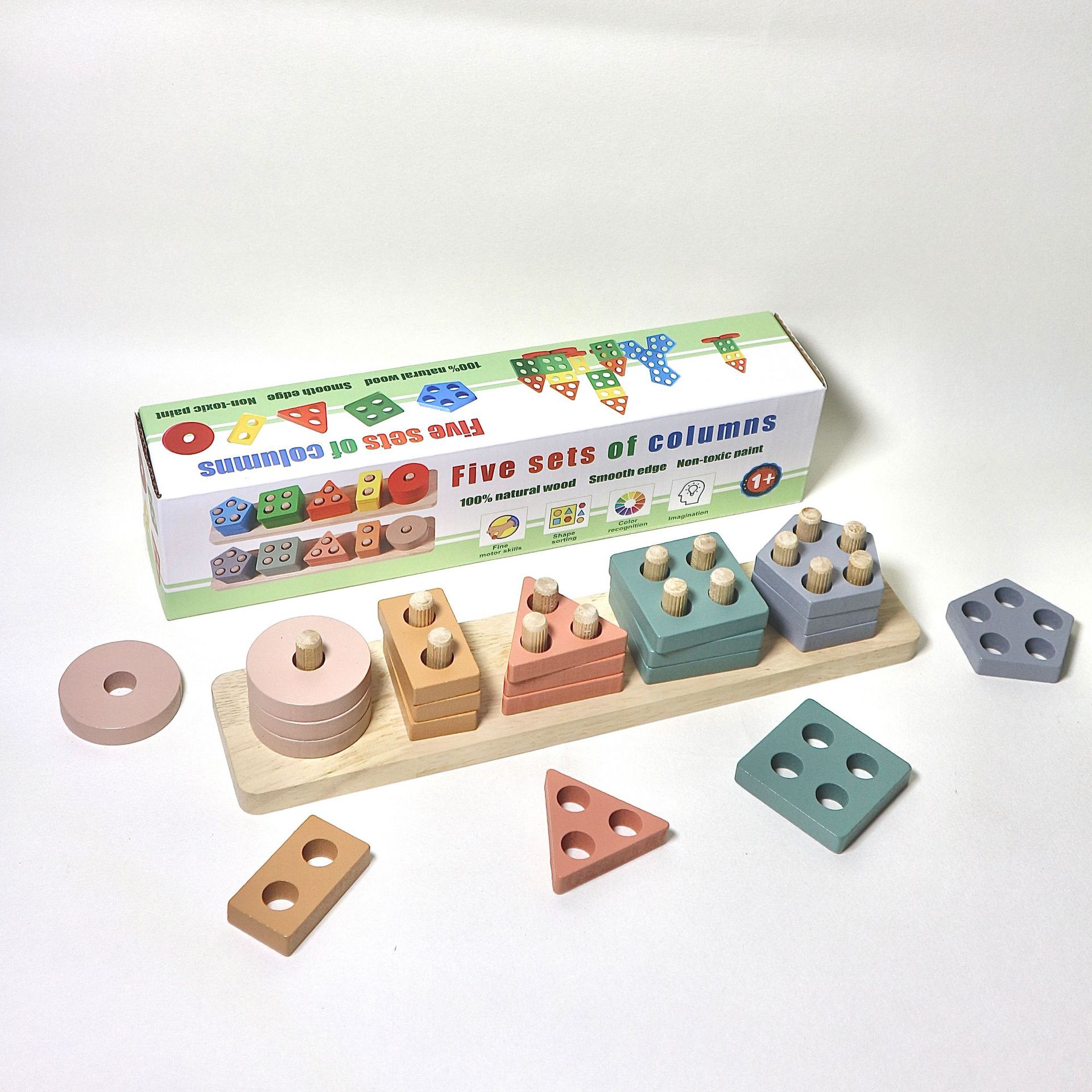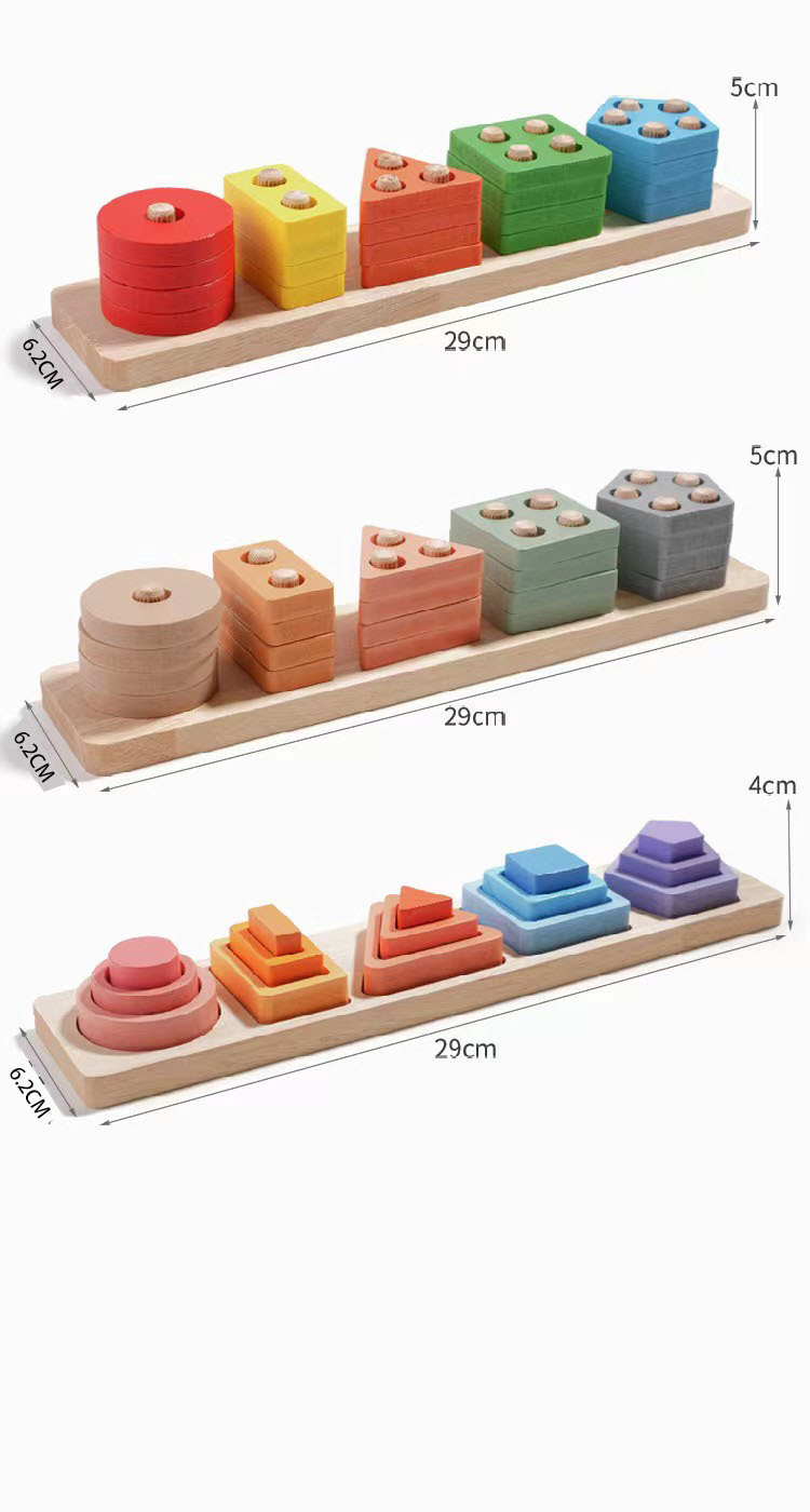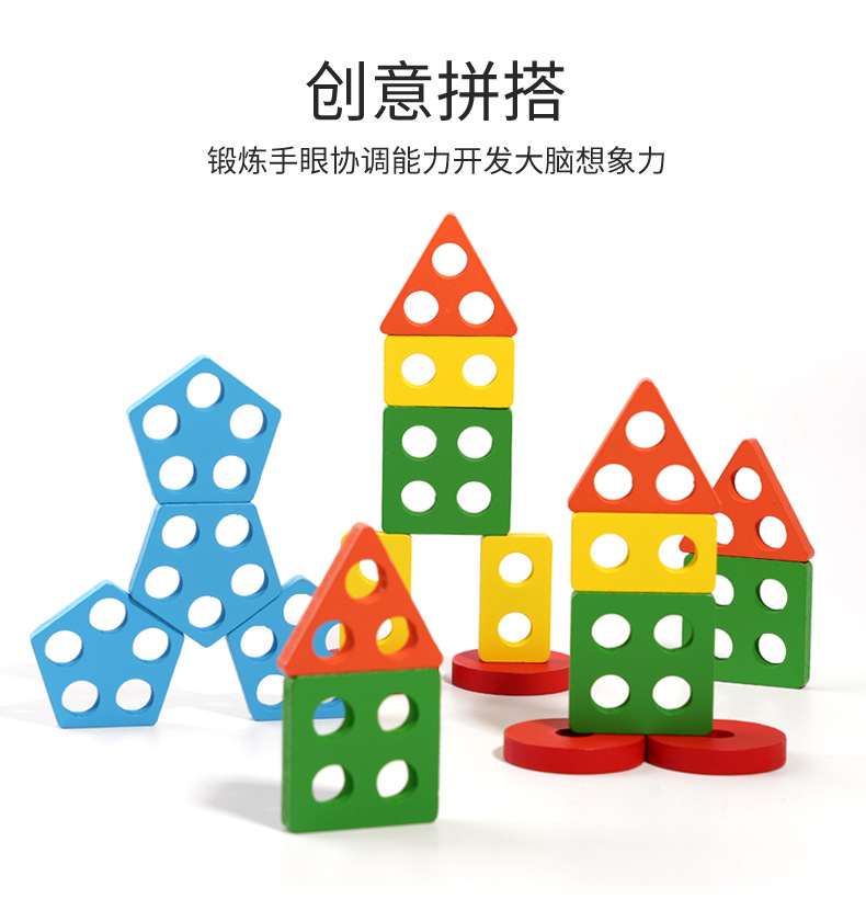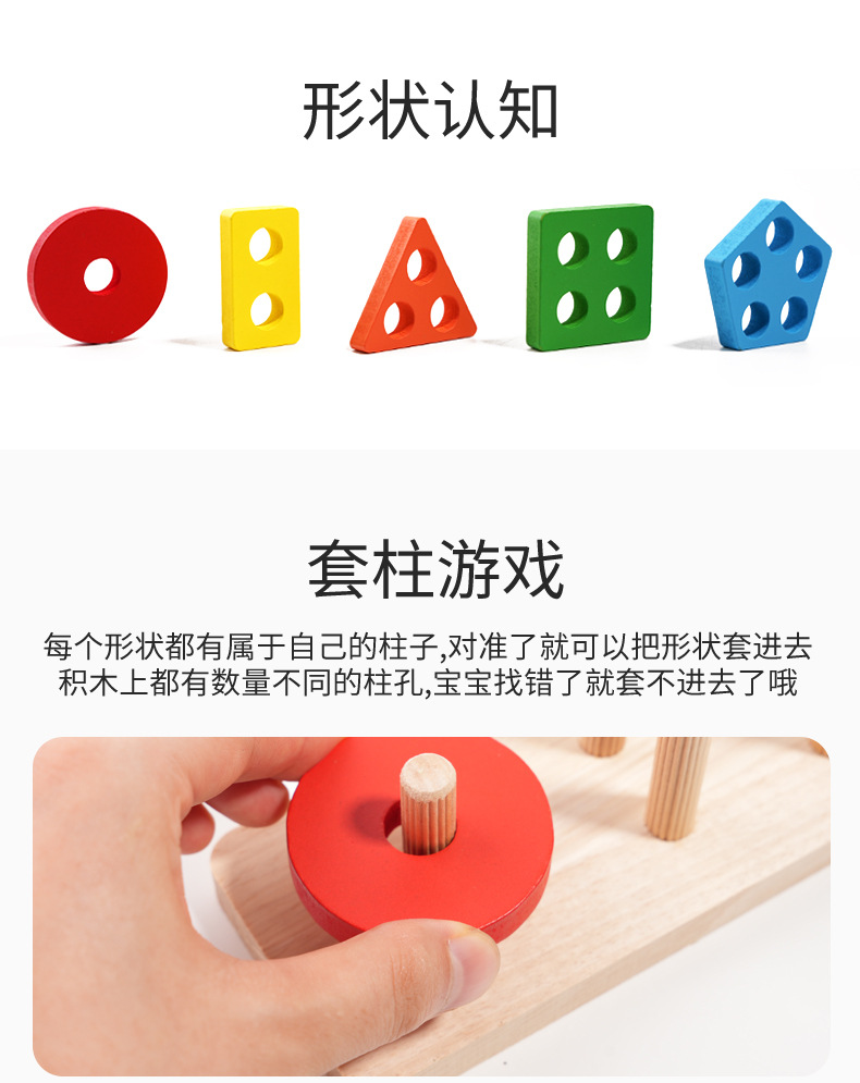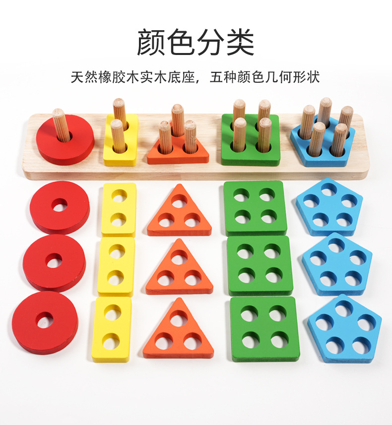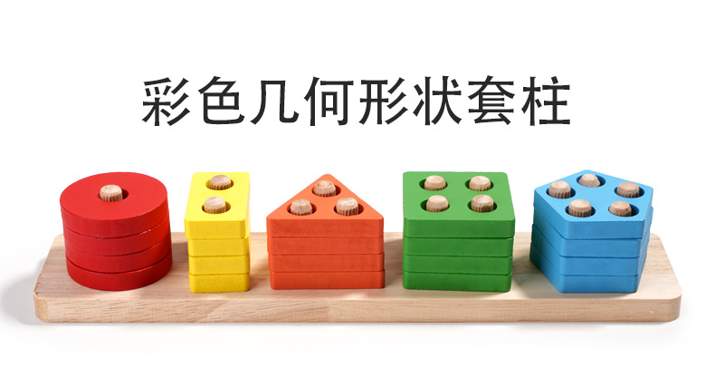 국경 간 CPC 컬러 5개 세트 기둥 단단한 나무 색상 인식 지능 기둥 기하학적 모양 세트 교육 장난감스토어 가기